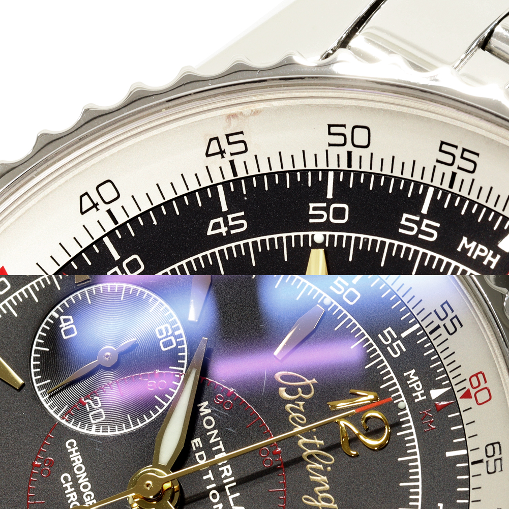 - 文字盤に薄い汚れ、ガラスコーティングに薄いキズがありますが、大きく目立つダメージではなく、綺麗な状態です。