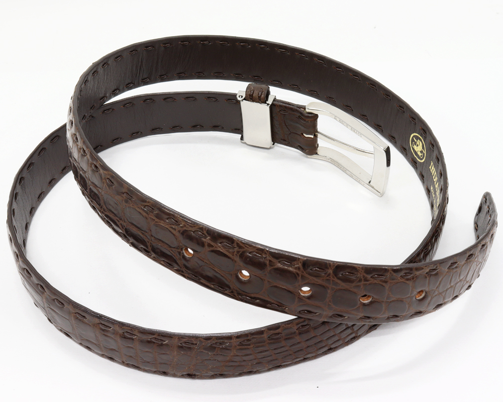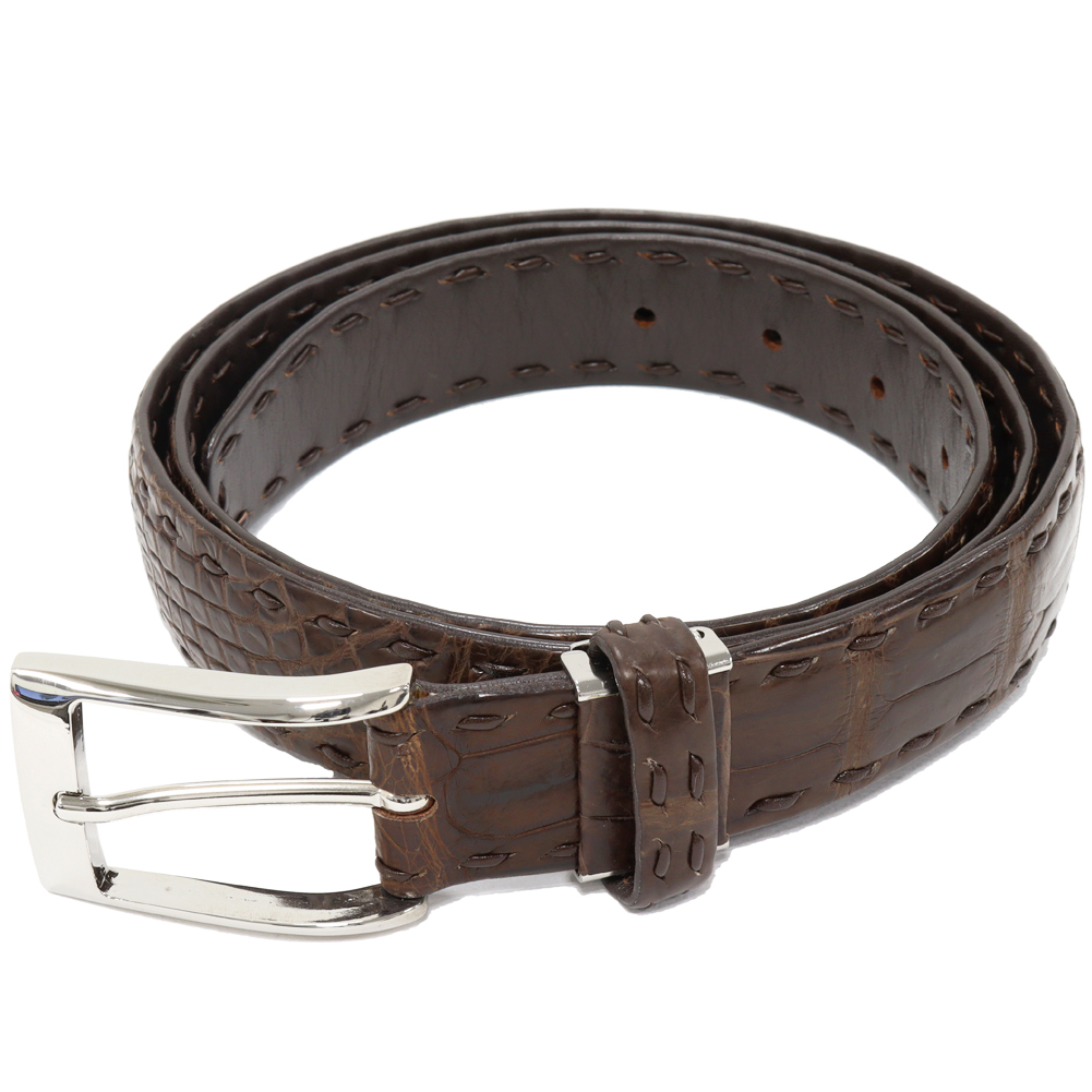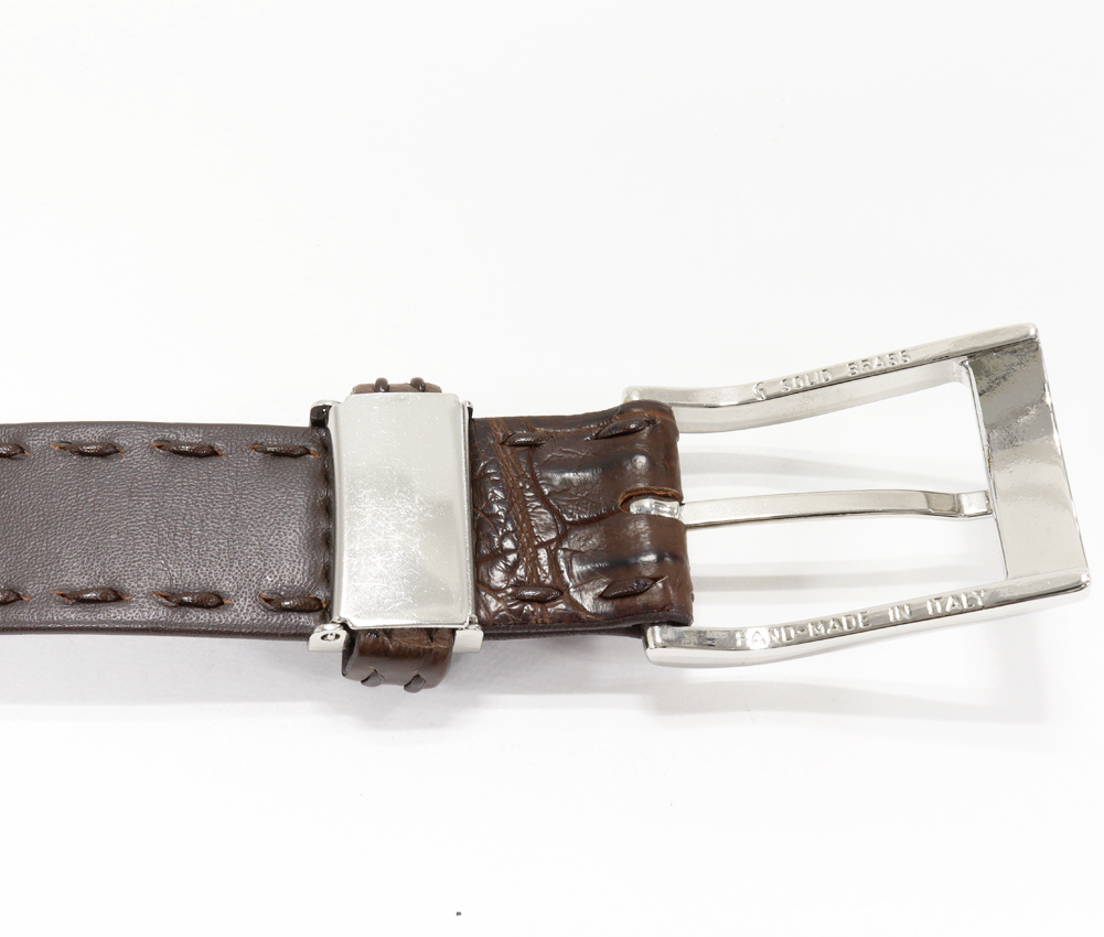 マット加工クロコダイル 肚ワニ ブラウン SSピンバックル ベルト