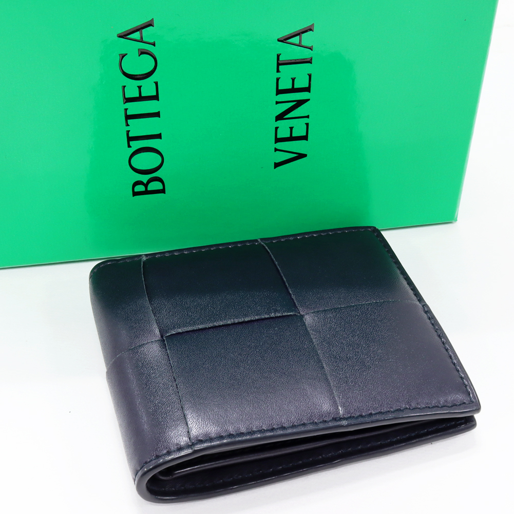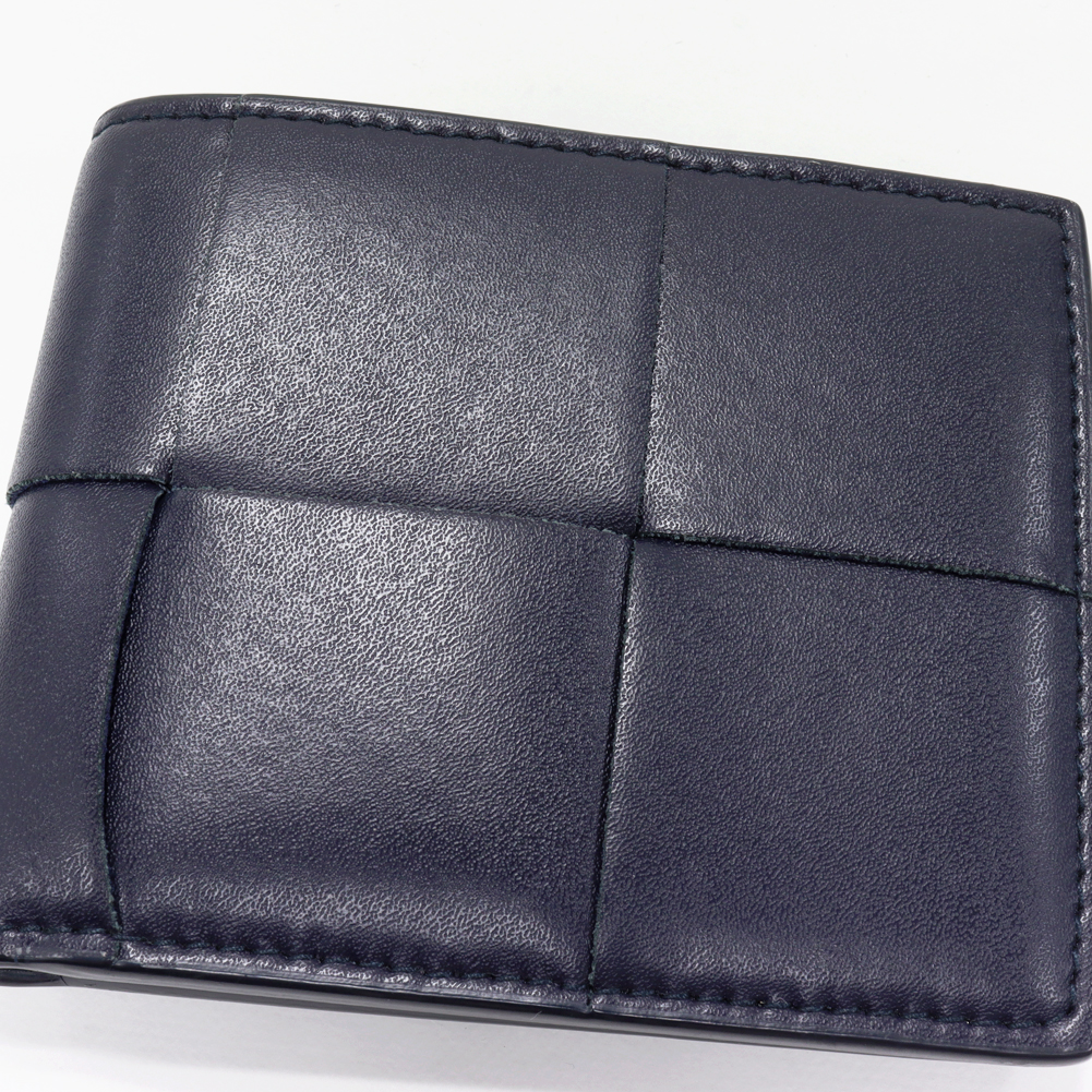 Bottega Veneta(ボッテガヴェネタ) カセット 二つ折りウォレット カーフ ネイビー 743004 二つ折り財布(小銭入れなし)
