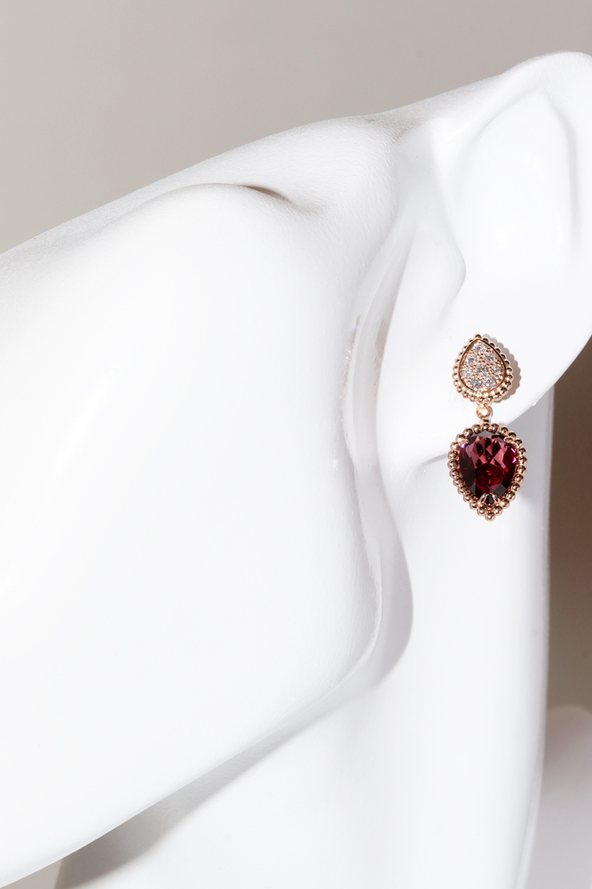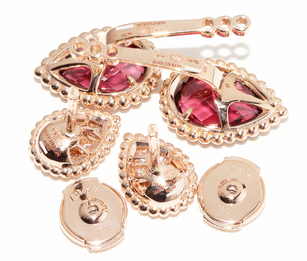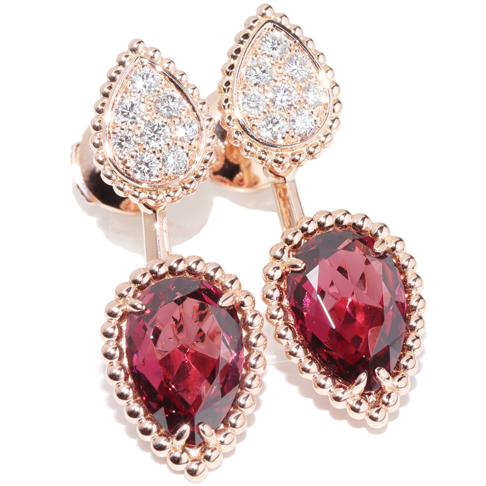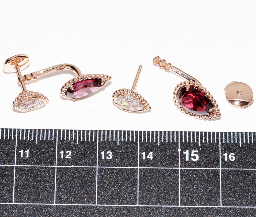 Boucheron(ブシュロン) K18PG ロードライトガーネット2P(4.20ct) ダイヤ16P(0.32ct) セルパンボエム 2モチーフ スタッズイヤリング 2WAY JCO01430 ピアス
