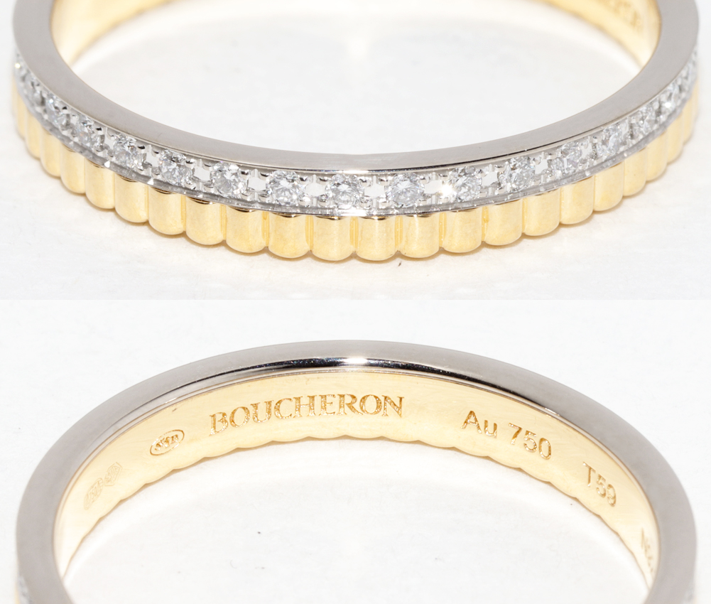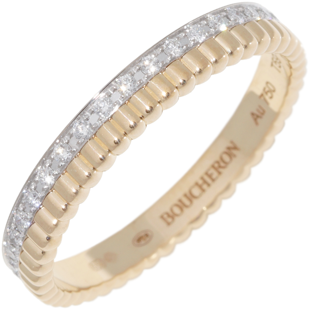 Boucheron(ブシュロン) K18YG K18WG ダイヤ37P(計約0.24ct) キャトル ラディアント リング ハーフ フルパヴェダイヤ JAL00134 #59(約18.5号) 指輪