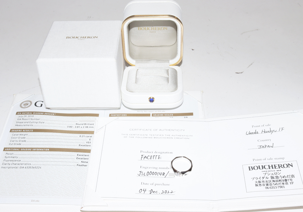Boucheron(ブシュロン) Pt950 ダイヤ0.21ct(E-VS1-3EXCLLENT-NONE) ファセット ソリテールリング JSL00001 #48(8号) 指輪