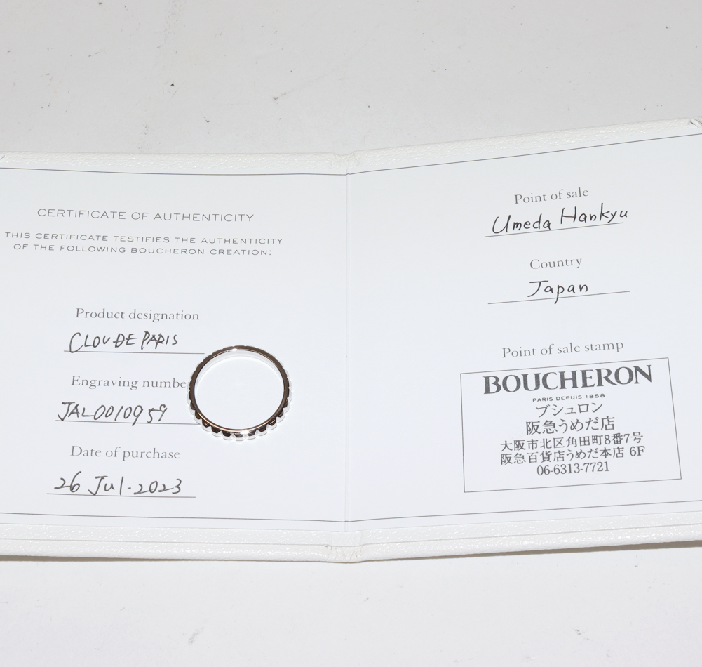 ホーム/アパレル/その他/Boucheron(ブシュロン) Pt950 キャトル クルドパリリング ミディアム JAL00109 #59(約18.5号) 指輪