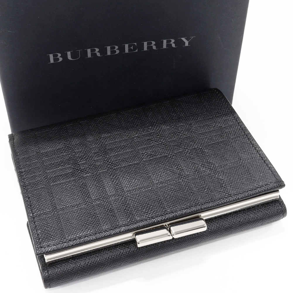 ホーム/財布/その他のブランド/Burberry(バーバリー) エンボスチェック ウォレット レザー ブラック 三つ折りがま口財布(小銭入れあり)