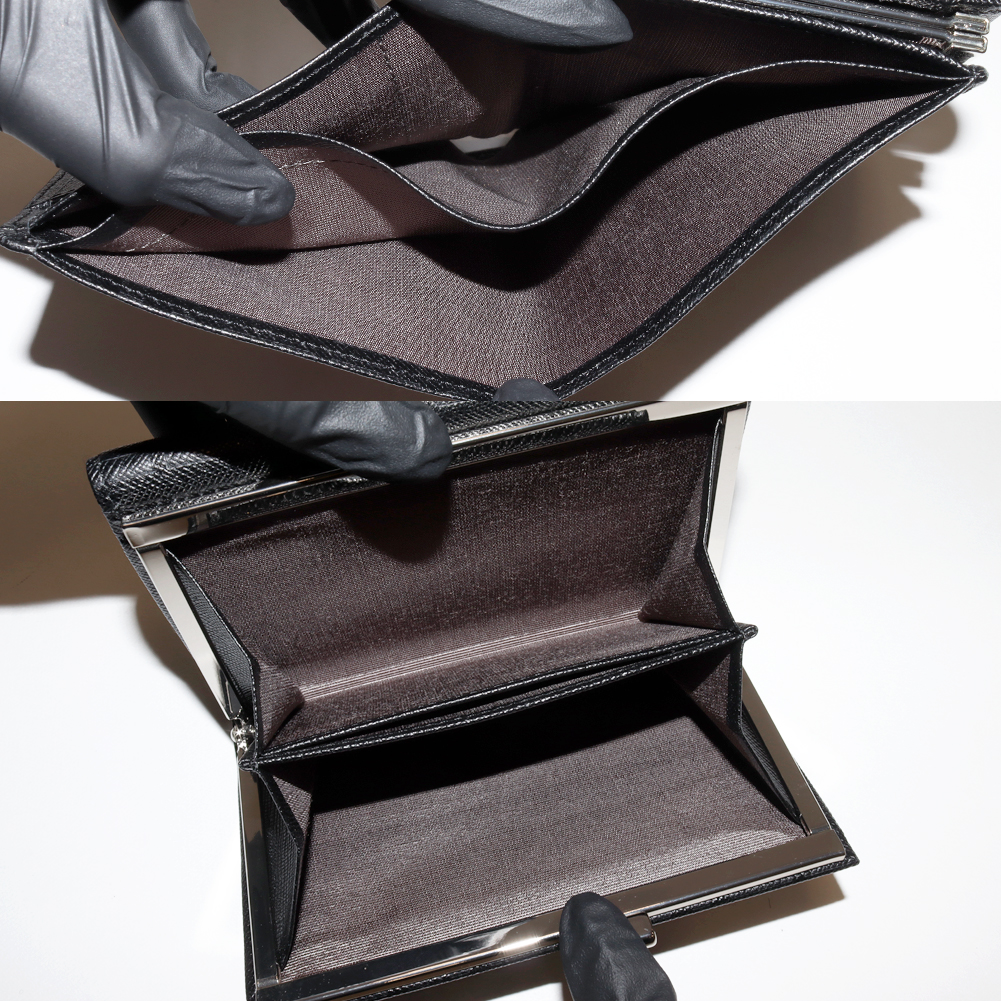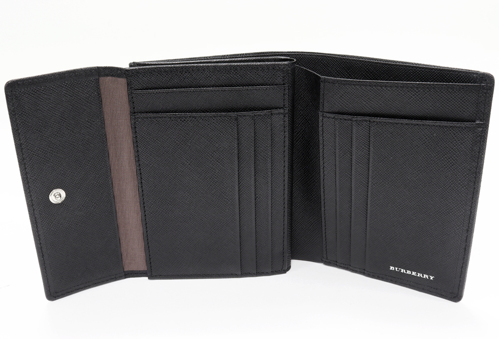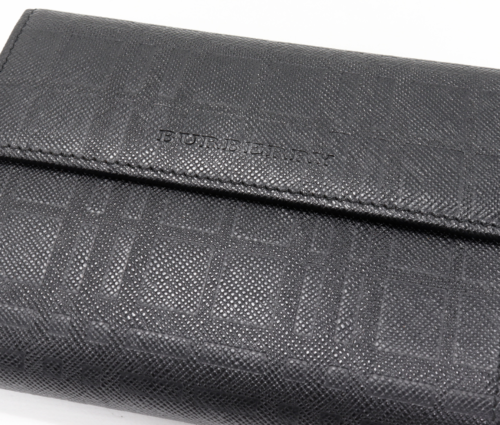 Burberry(バーバリー) エンボスチェック ウォレット レザー ブラック 三つ折りがま口財布(小銭入れあり)