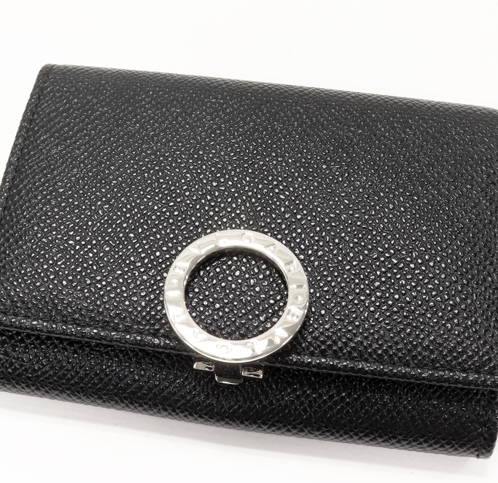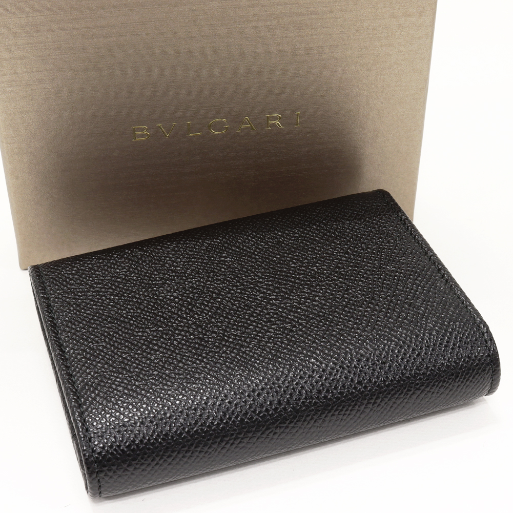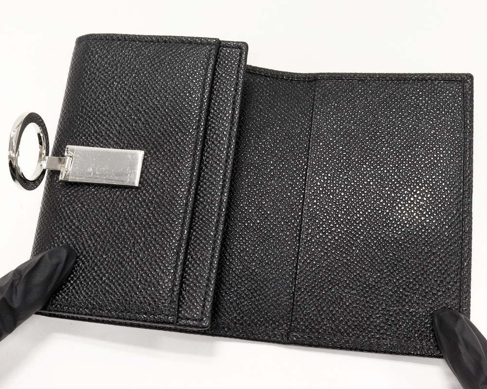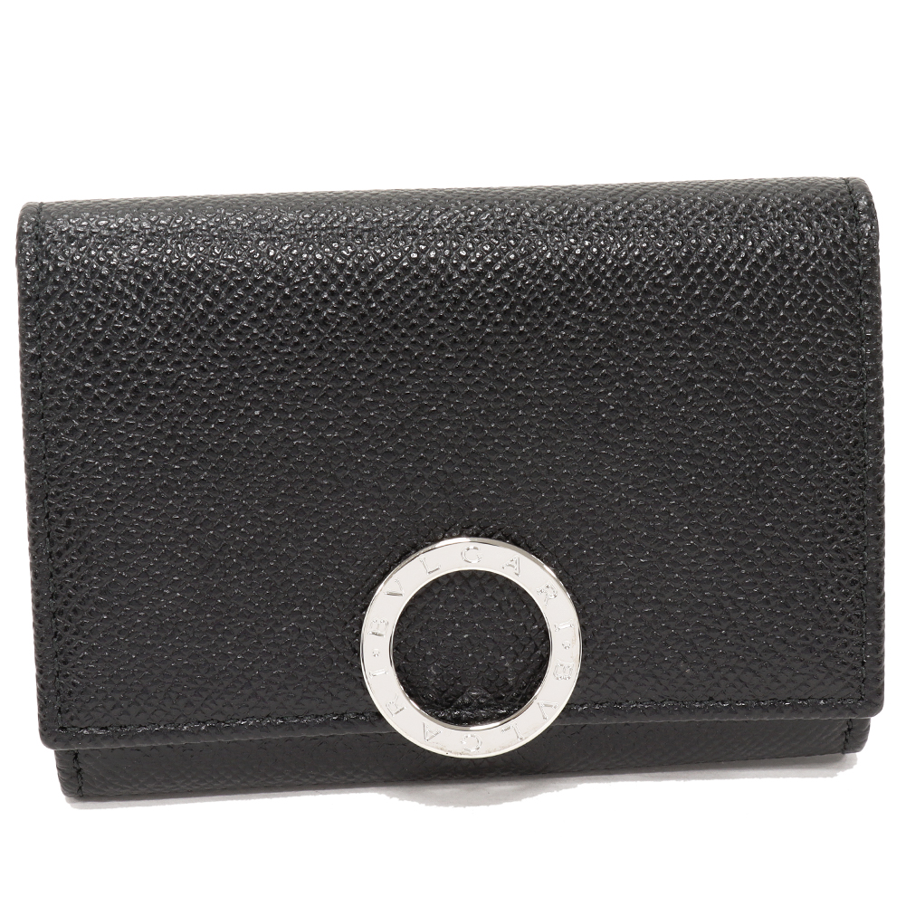 BVLGARI(ブルガリ) ブルガリブルガリ ロゴクリップ ビジネスカードホルダー グレインカーフスキン ブラック シルバー金具 30420 二つ折りカードケース マチ付き名刺入れ