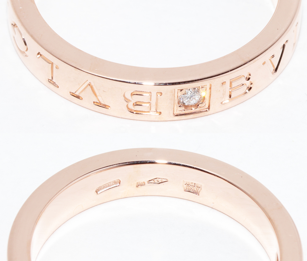 BVLGARI(ブルガリ) K18PG ダイヤ1P(0.04ct) B.zero1 ビーゼロワンリング ブルガリブルガリ ダブルロゴリング AN854185 約19号 指輪