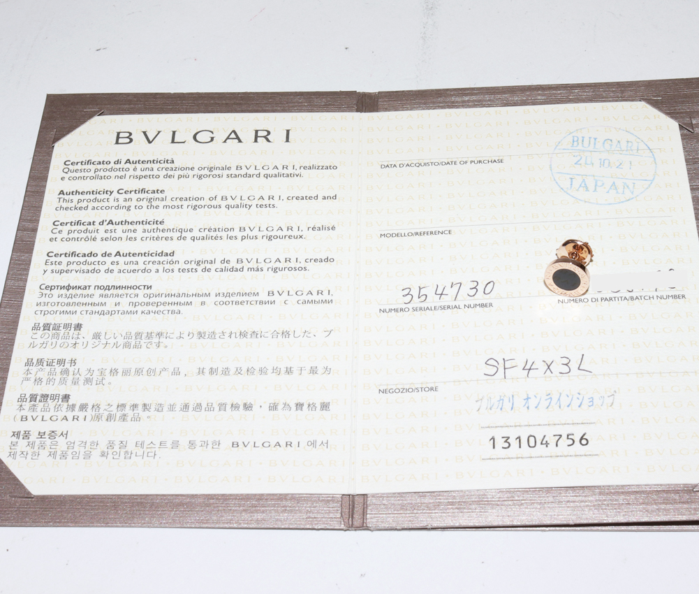 BVLGARI(ブルガリ) K18PG オニキス ブルガリブルガリ シングルピアス 片方のみ 354730(OR858198) ピアス