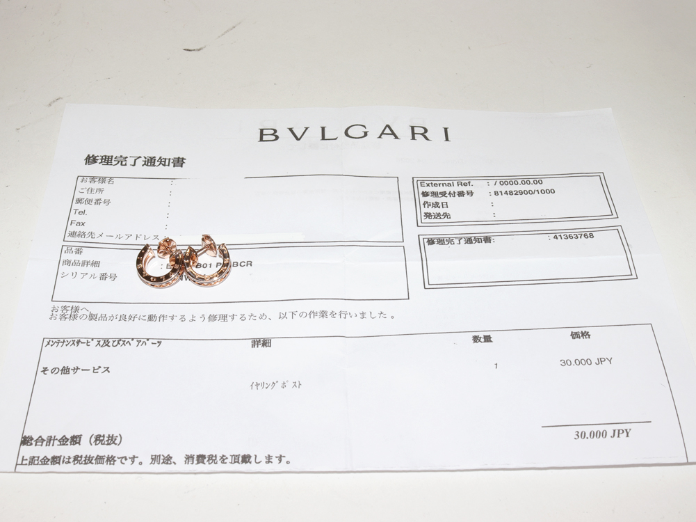 - 当店BOXもしくは布袋/正規店修理明細書