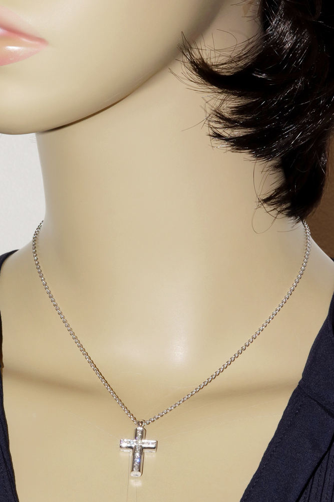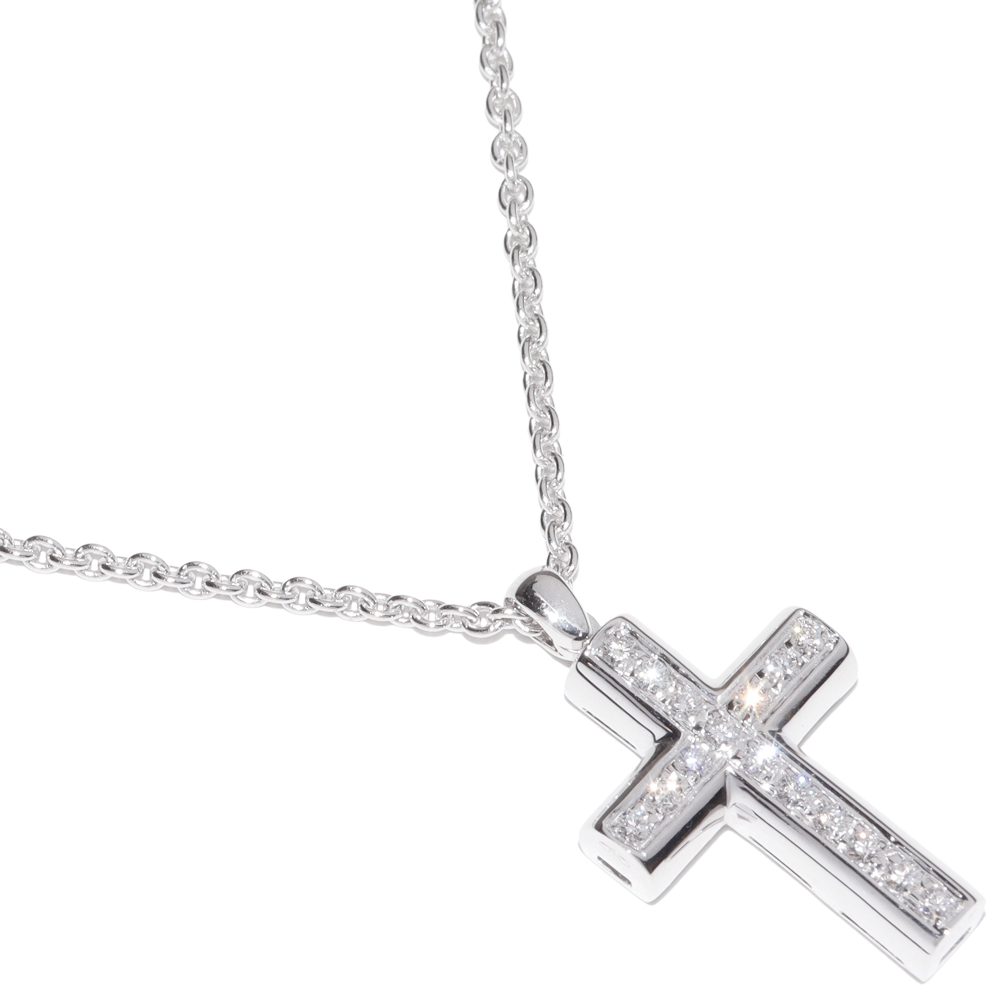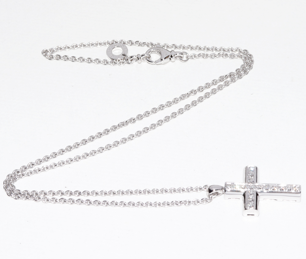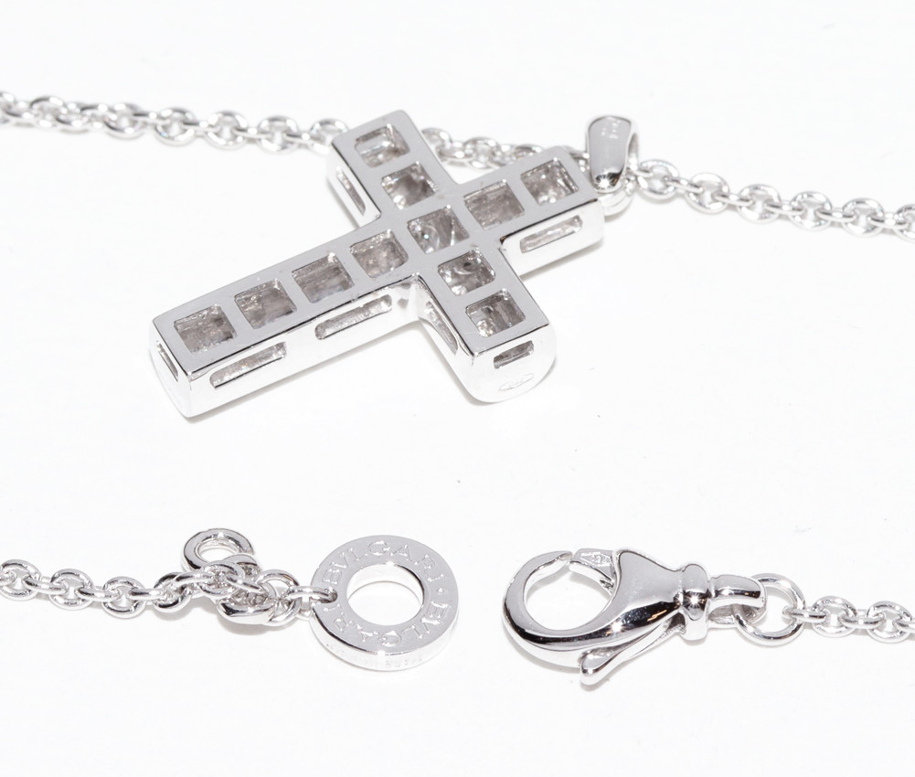 BVLGARI(ブルガリ) K18WG 17P ラテンクロス デミパヴェダイヤ ペンダントネックレス CN850461 ペンダントネックレス