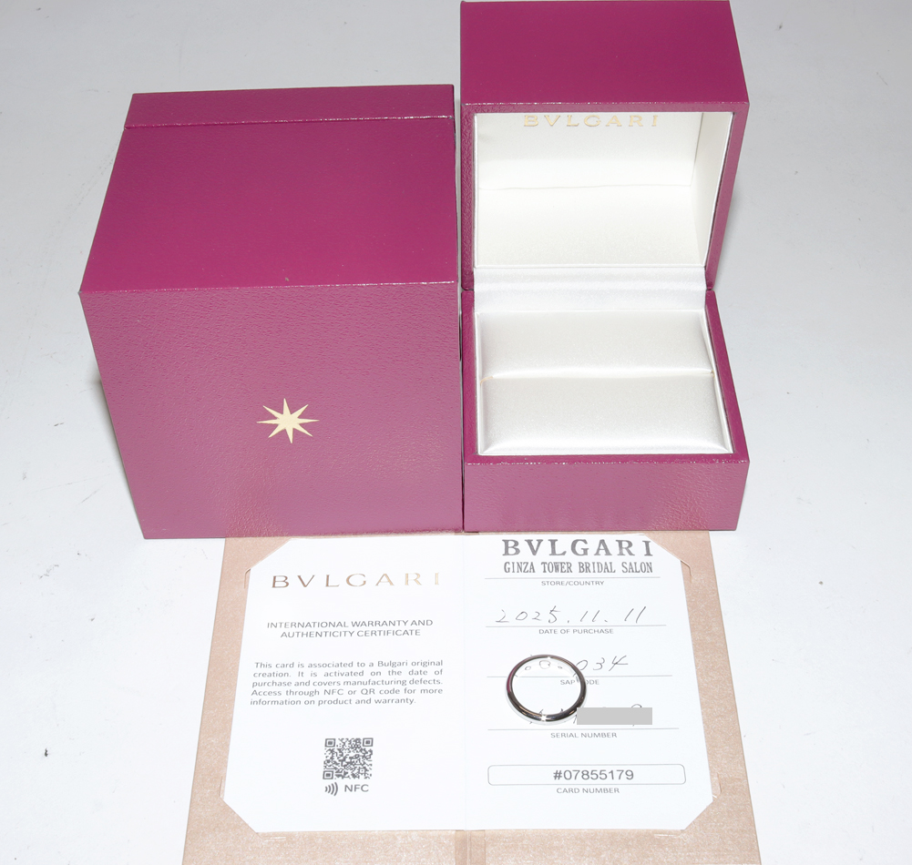 BVLGARI(ブルガリ) Pt950 シークレットダイヤ1P(0.01ct) ローマ アモール ウェディングリング 幅2.5ミリ AN859861 360034 #50(約9.5号) 指輪
