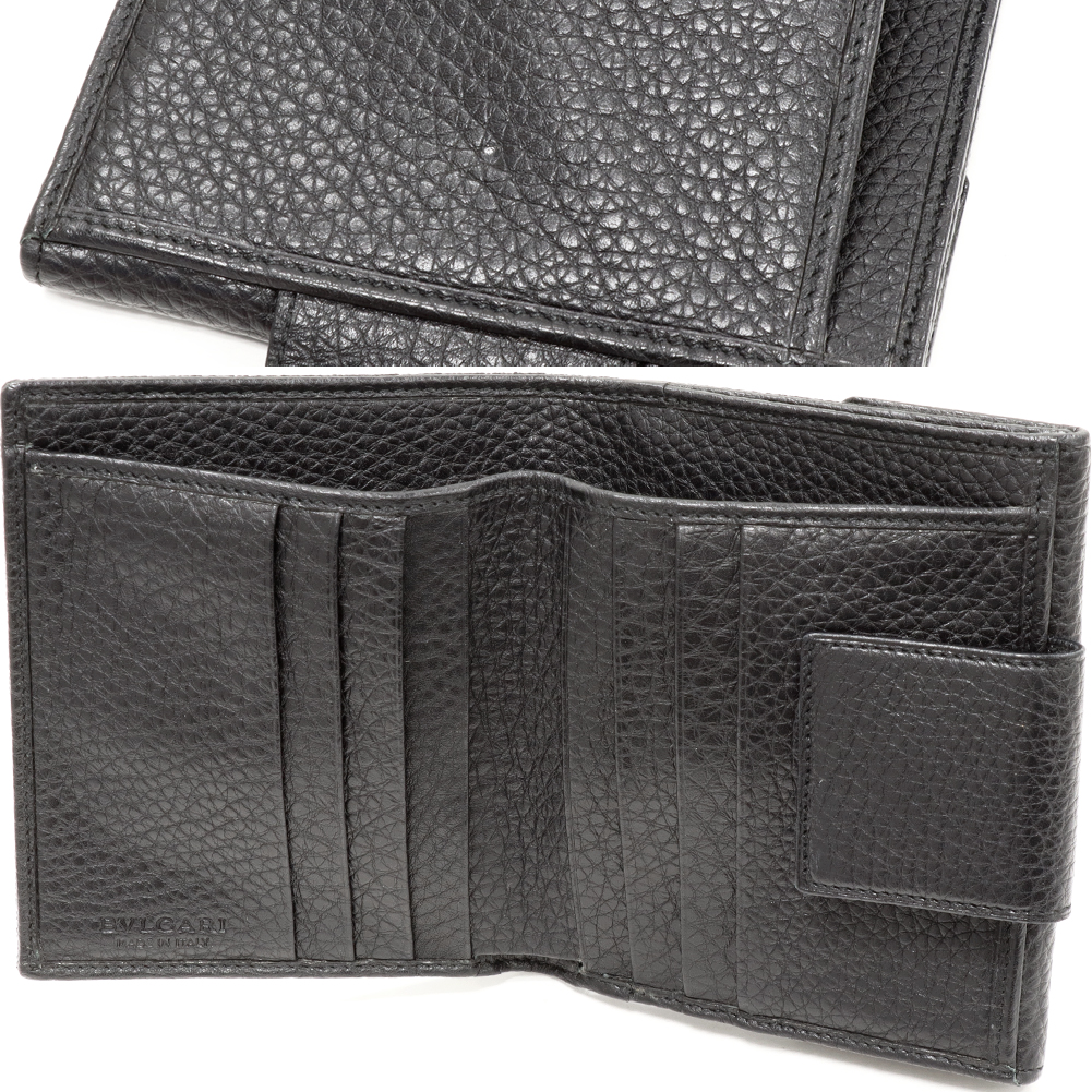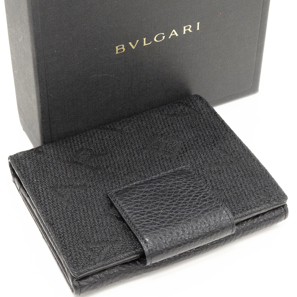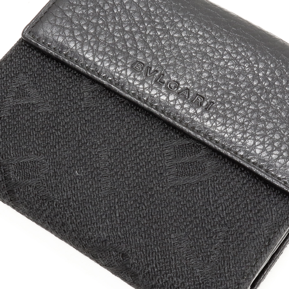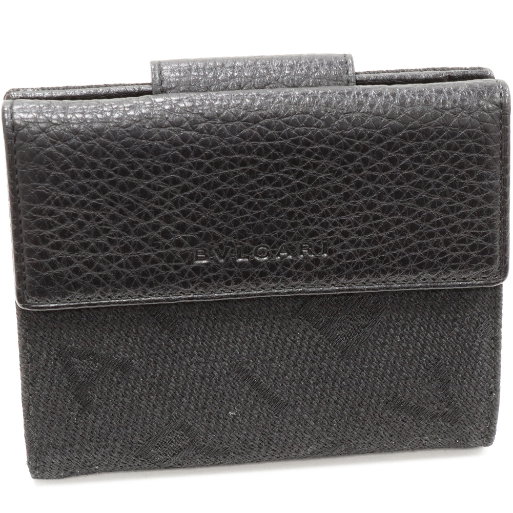 BVLGARI(ブルガリ) ロゴマニア Wホック財布 キャンバスxカーフ 黒 25118 二つ折り財布(小銭入れあり)