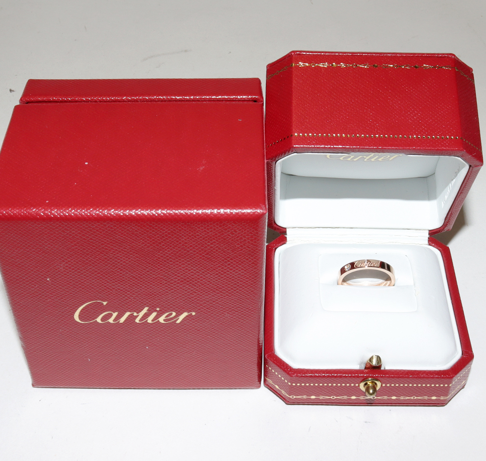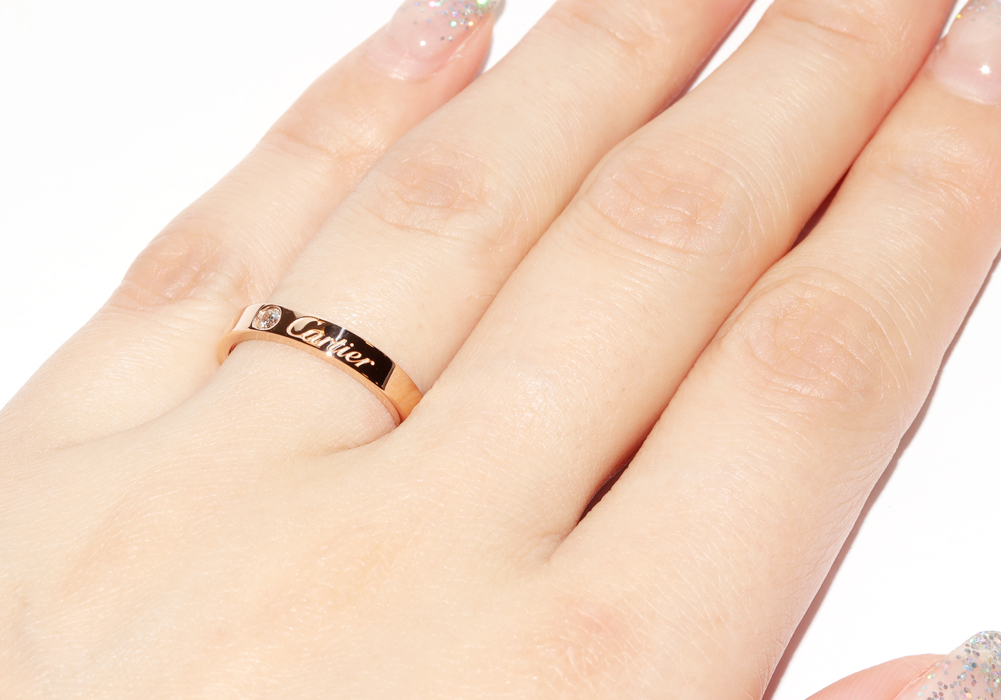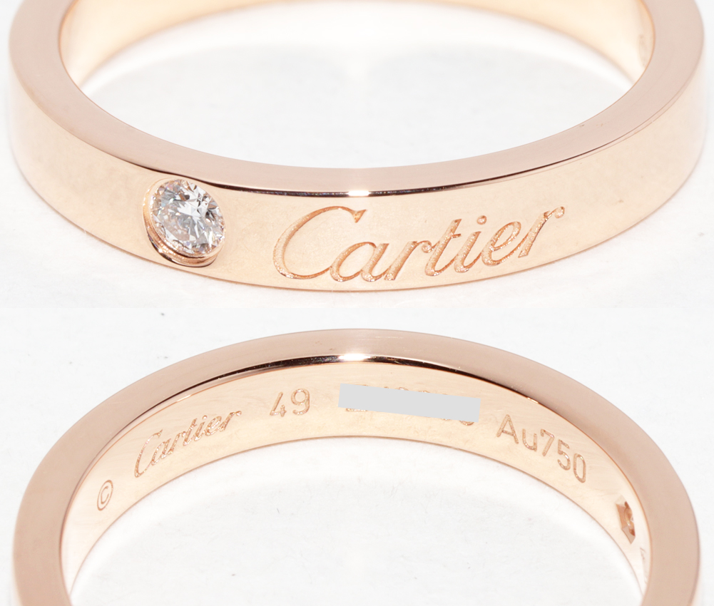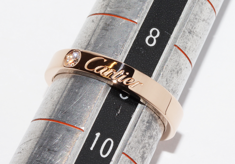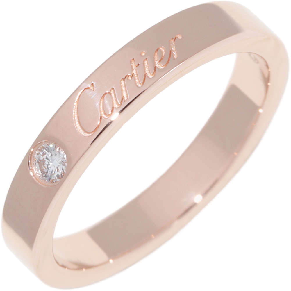Cartier(カルティエ) K18PG ダイヤ1P(0.03ct) Cドゥカルティエ エングレーブドリング 幅3ミリ B40864 #49(9号) 指輪