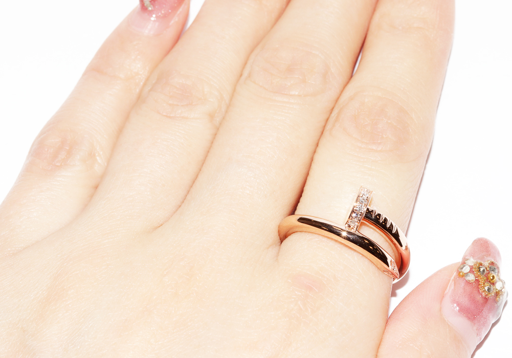ホーム/ブランドジュエリー/カルティエ/Cartier(カルティエ) K18PG ダイヤ22P(計0.13ct) ジュストアンクル リング クラシックモデル B40948 #53(約13号) 指輪