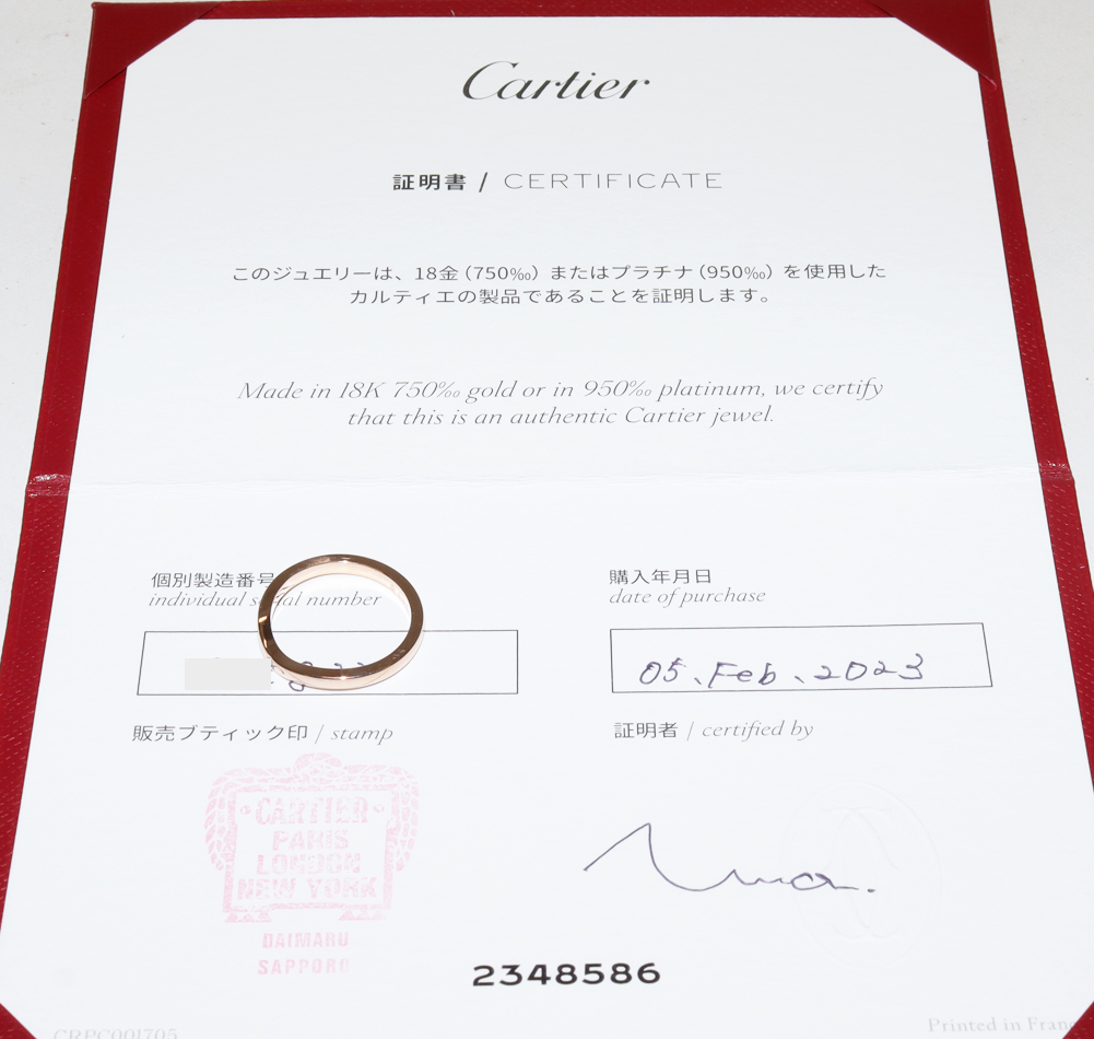 Cartier(カルティエ) K18PG ダイヤ3P(0.01ct) バレリーナ ウェディングリング 幅2ミリ B40986 #49(8.5号) 指輪