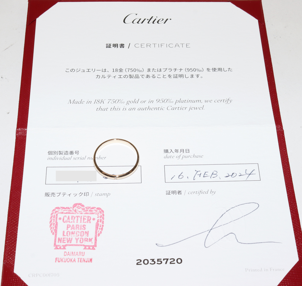 Cartier(カルティエ) K18YG ダイヤ1P(0.01ct) クラシックウェディングリング 1895ウェディングリング 幅2.6ミリ B40576 #58(約17.5号) 指輪