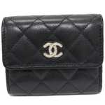 シャネル ココマーク スモールフラップウォレット ソフトキャビアスキン 黒 シルバー金具 AP1075 三つ折り財布(小銭入れあり)