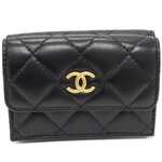 CHANEL(シャネル) アイコニックプリント ココマーク コンパクトウォレット ラムスキン 黒 ヴィンテージゴールド金具 AP0094 三つ折り財布(小銭入れあり)