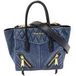 miumiu(ミュウミュウ) バイカー デニムキャンバスxゴートレザー AVIO(ブルー)xネロ(黒) 2WAY RN1032 ハンドトートバッグ ショルダーバッグ