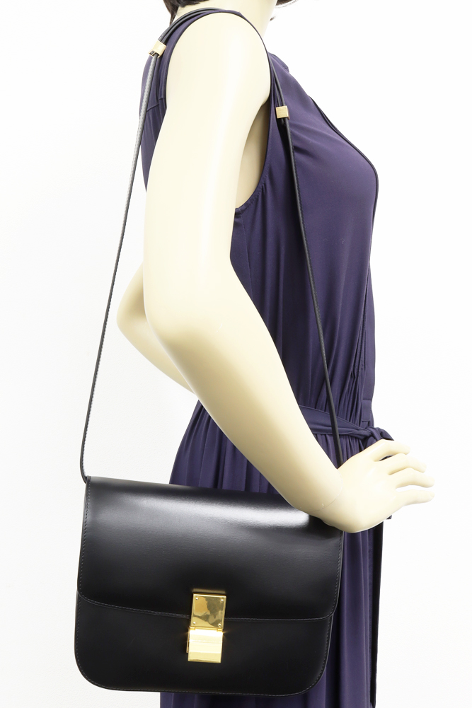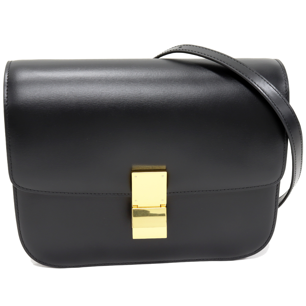 CELINE(セリーヌ) クラシックボックス ミディアム カーフ 黒 ヴィンテージゴールド金具 189173DLS.38NO ショルダーバッグ クラッチバッグ