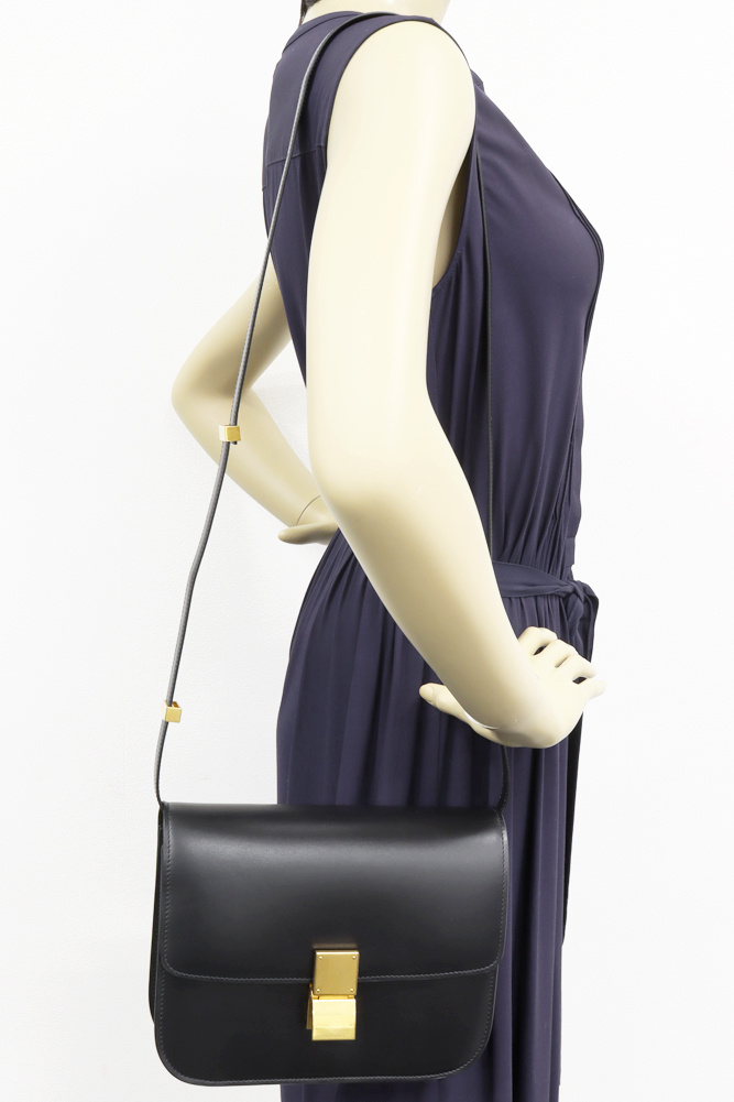 CELINE(セリーヌ) クラシックボックス ミディアム カーフ 黒 ヴィンテージゴールド金具 2WAY 164173DLS.38NO(189173DLS.38NO) ショルダーバッグ クラッチバッグ