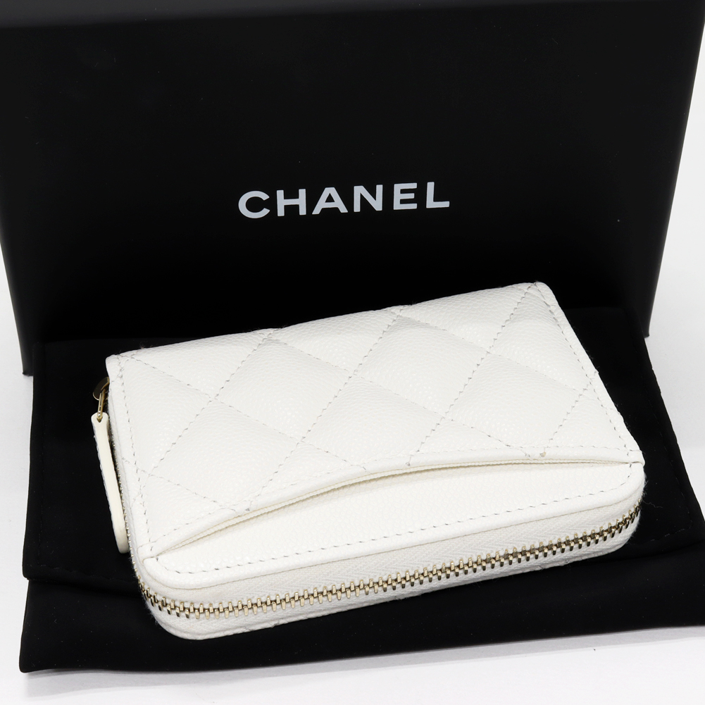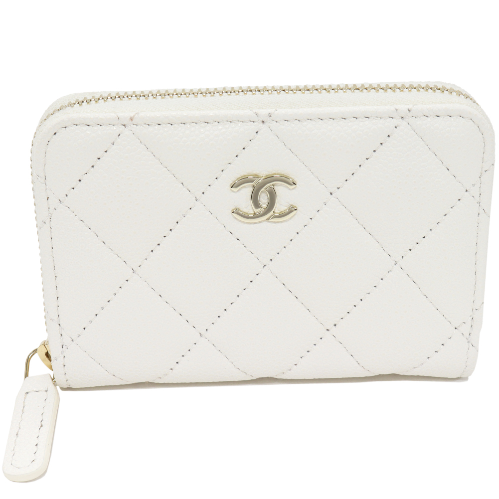CHANEL(シャネル) マトラッセ クラシック ジップコインパース キャビアスキン 白 ゴールド金具 AP0216 コインケース