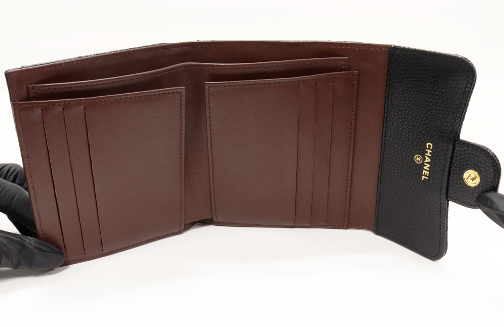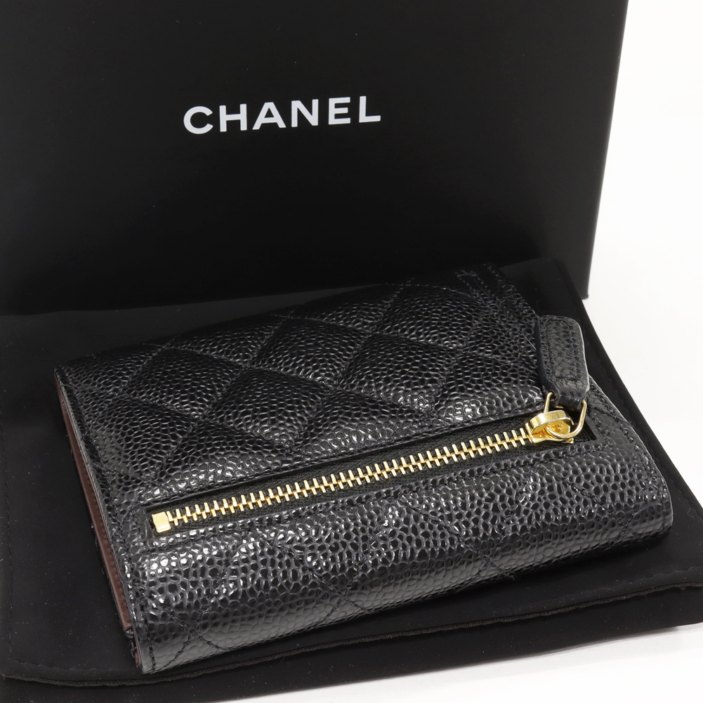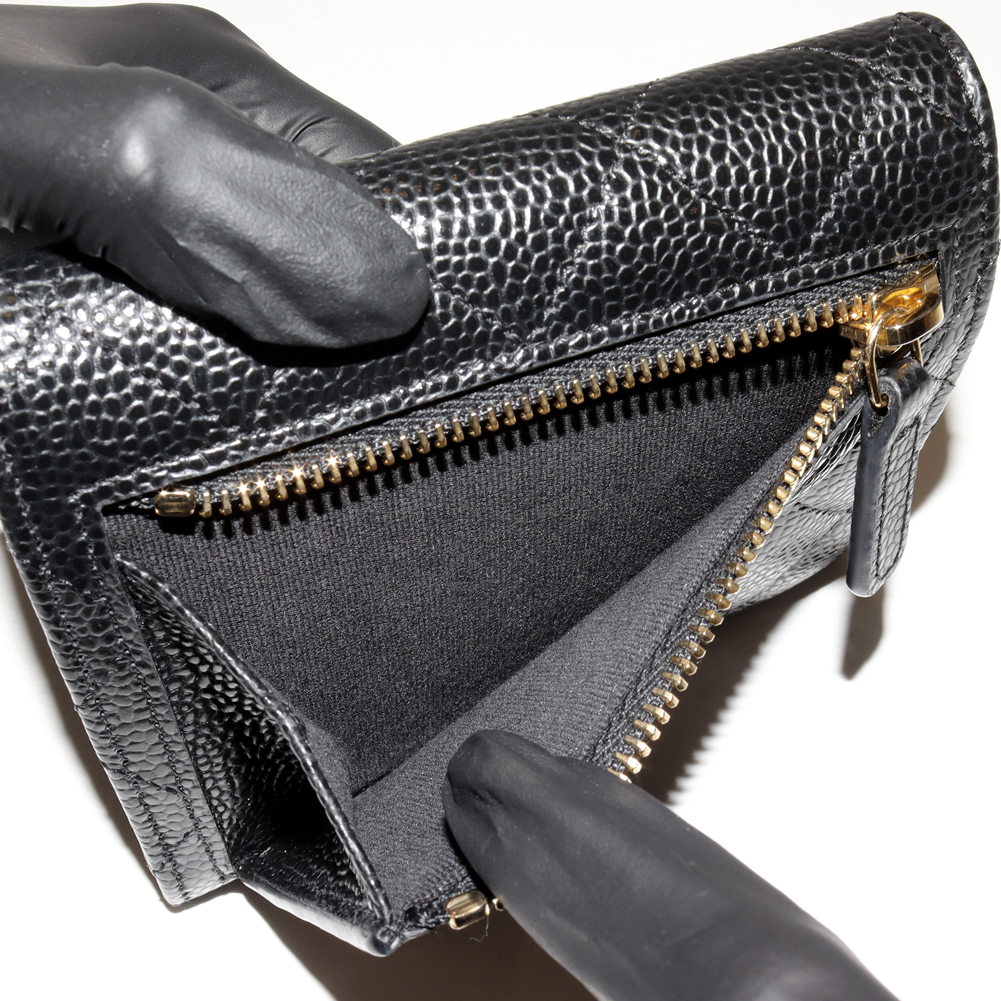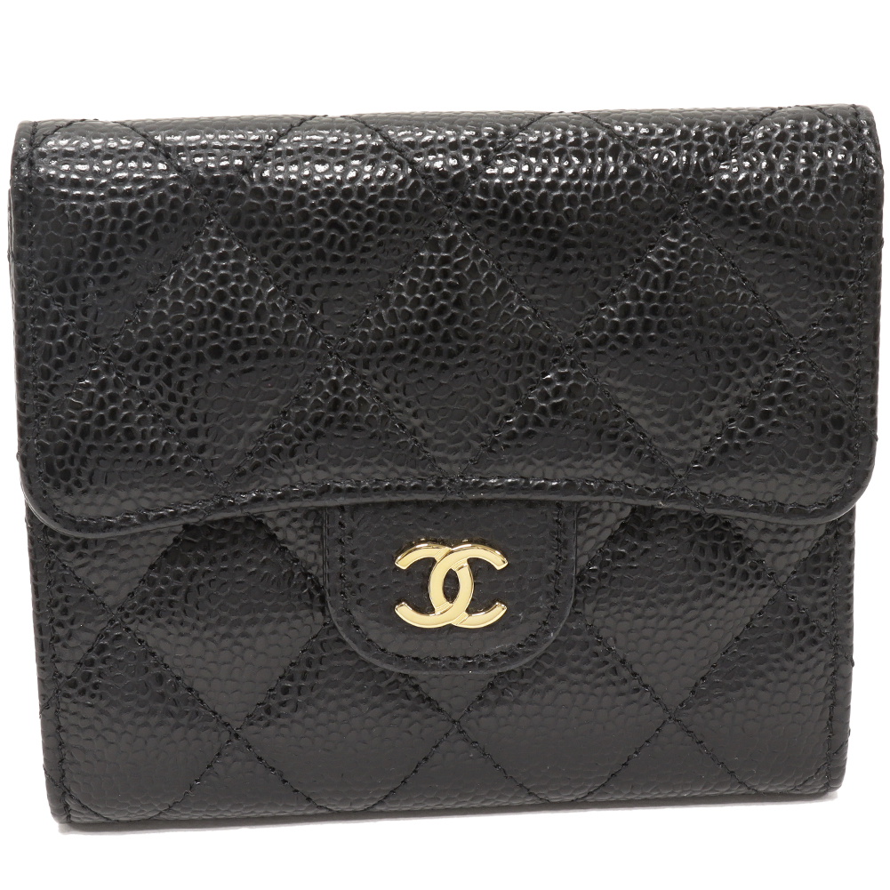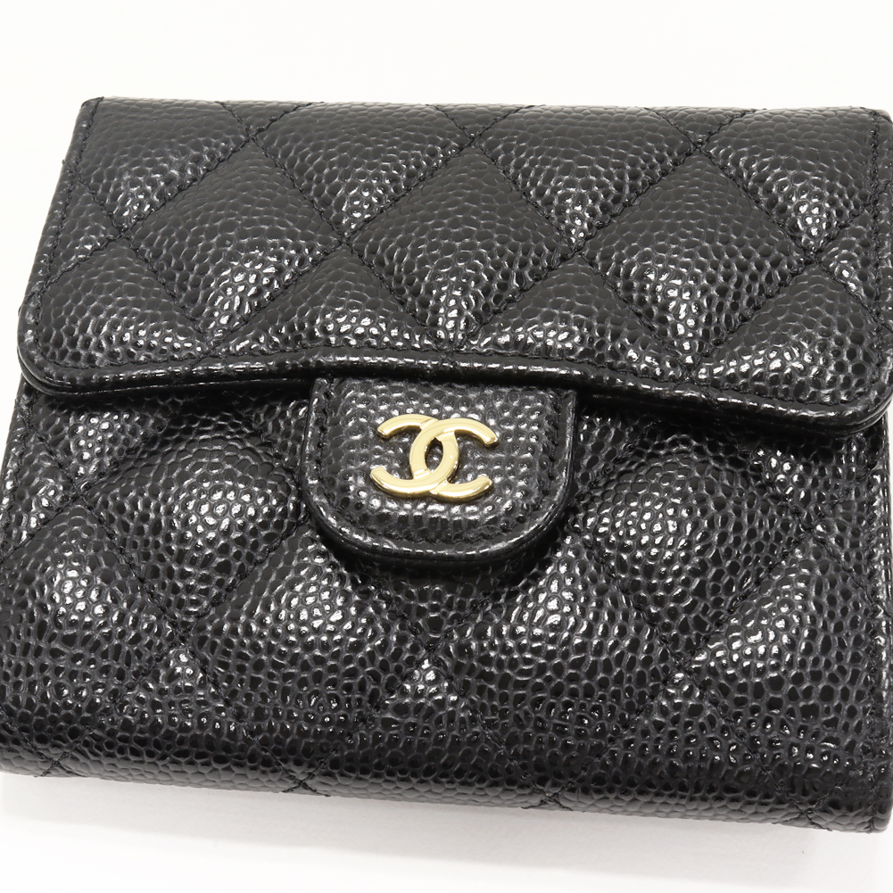 ホーム/財布/シャネル/CHANEL(シャネル) クラシック スモール フラップ ウォレット キャビアスキン ブラック ゴールド金具 AP0231 Y01864 C3906 三つ折り財布(小銭入れあり)