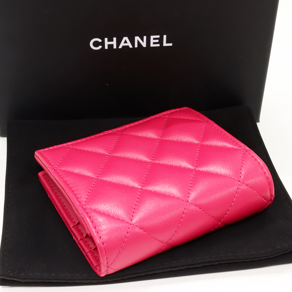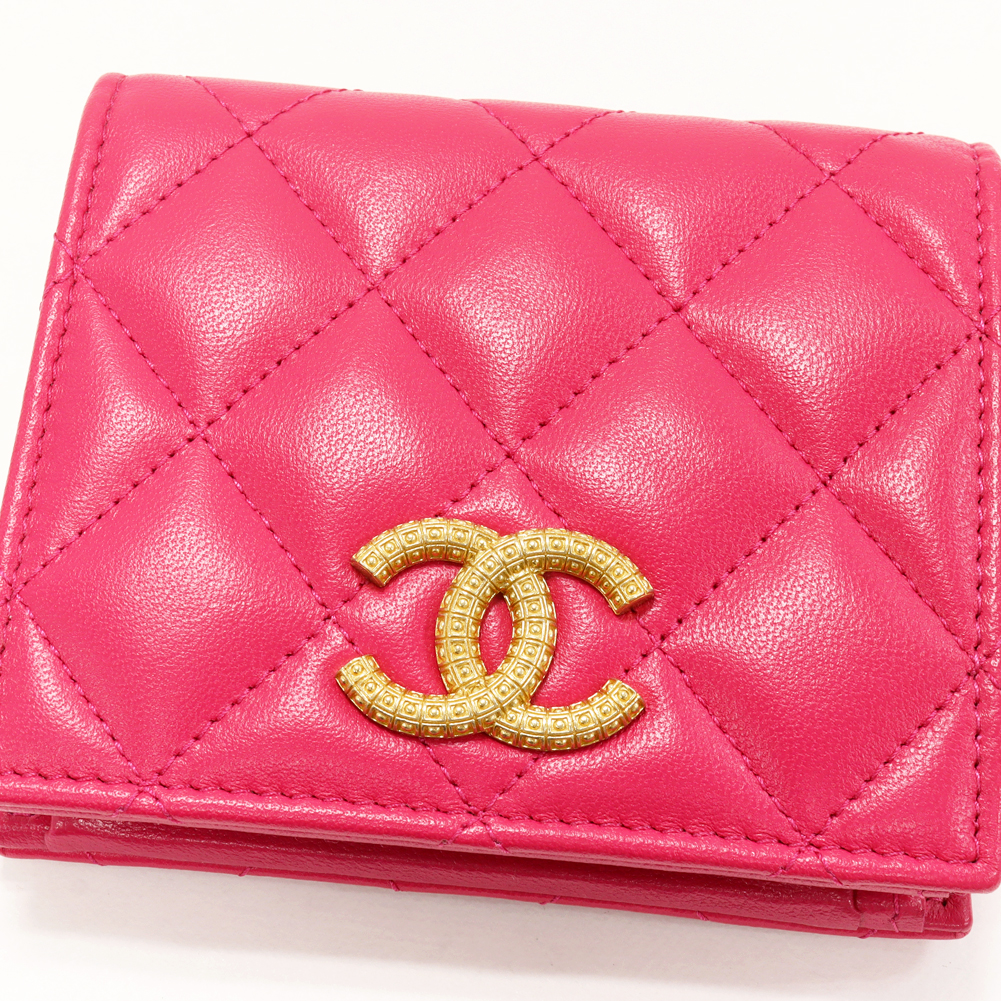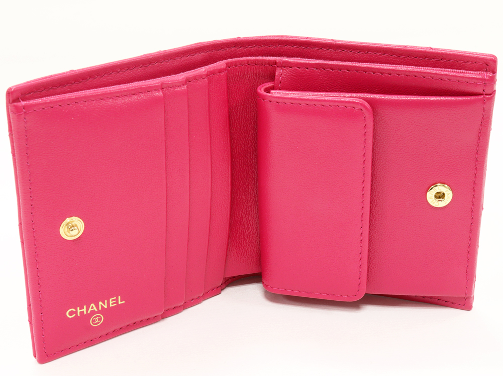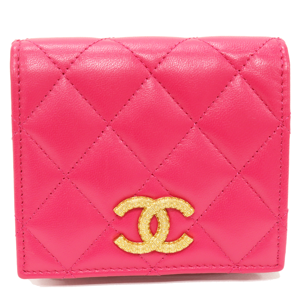 CHANEL(シャネル) マトラッセ ココマーク スモールウォレット ラムスキン マゼンダ ゴールド金具 AP3055 二つ折り財布(小銭入れあり)