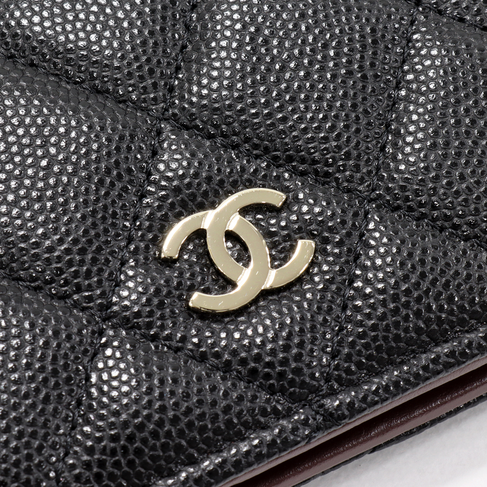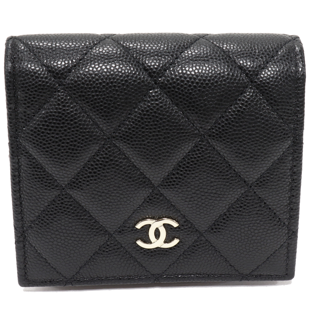 CHANEL(シャネル) マトラッセ スモールウォレット キャビアスキン 黒 ゴールド金具 AP3178 B10583 C3906 二つ折り財布(小銭入れあり)
