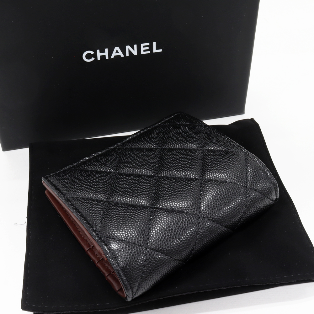 ホーム/財布/シャネル/CHANEL(シャネル) マトラッセ スモールウォレット キャビアスキン 黒 ゴールド金具 AP3178 B10583 C3906 二つ折り財布(小銭入れあり)