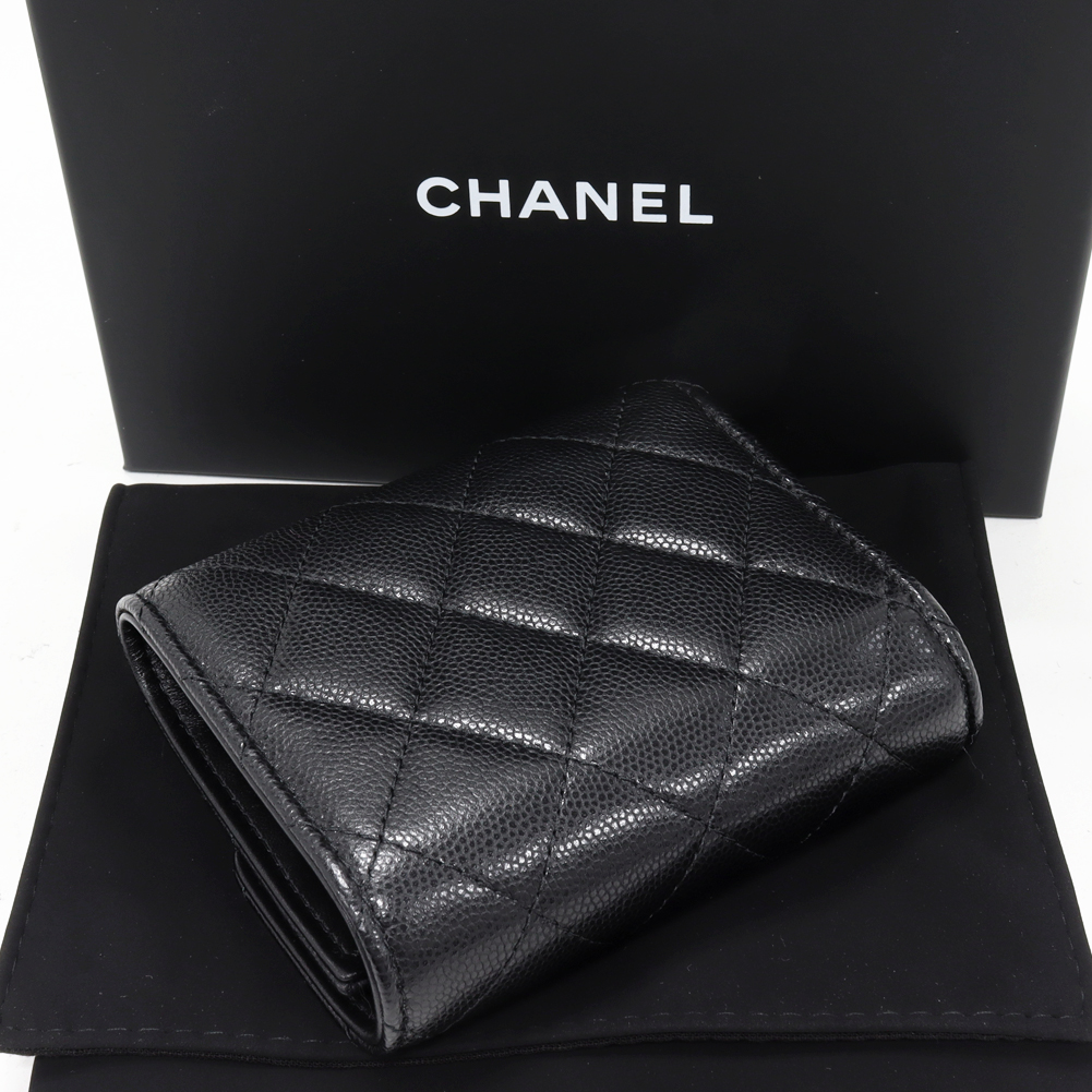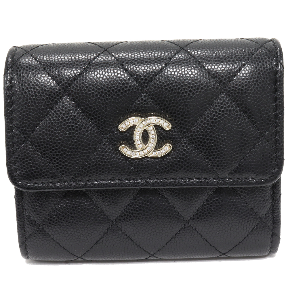 ホーム/財布/シャネル/CHANEL(シャネル) クラシック スモールウォレット キャビアスキン 黒 ラインストーン シャンパンゴールド金具 AP4816 三つ折り財布(小銭入れあり)
