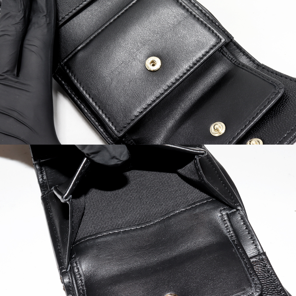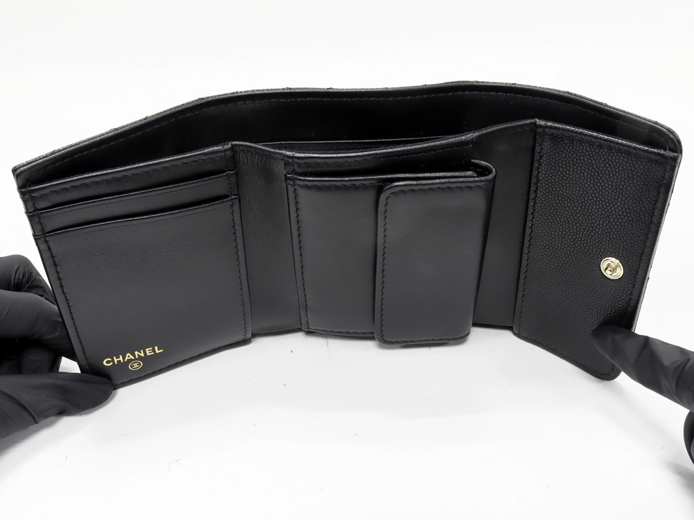 CHANEL(シャネル) クラシック スモールウォレット キャビアスキン 黒 ラインストーン シャンパンゴールド金具 AP4816 三つ折り財布(小銭入れあり)