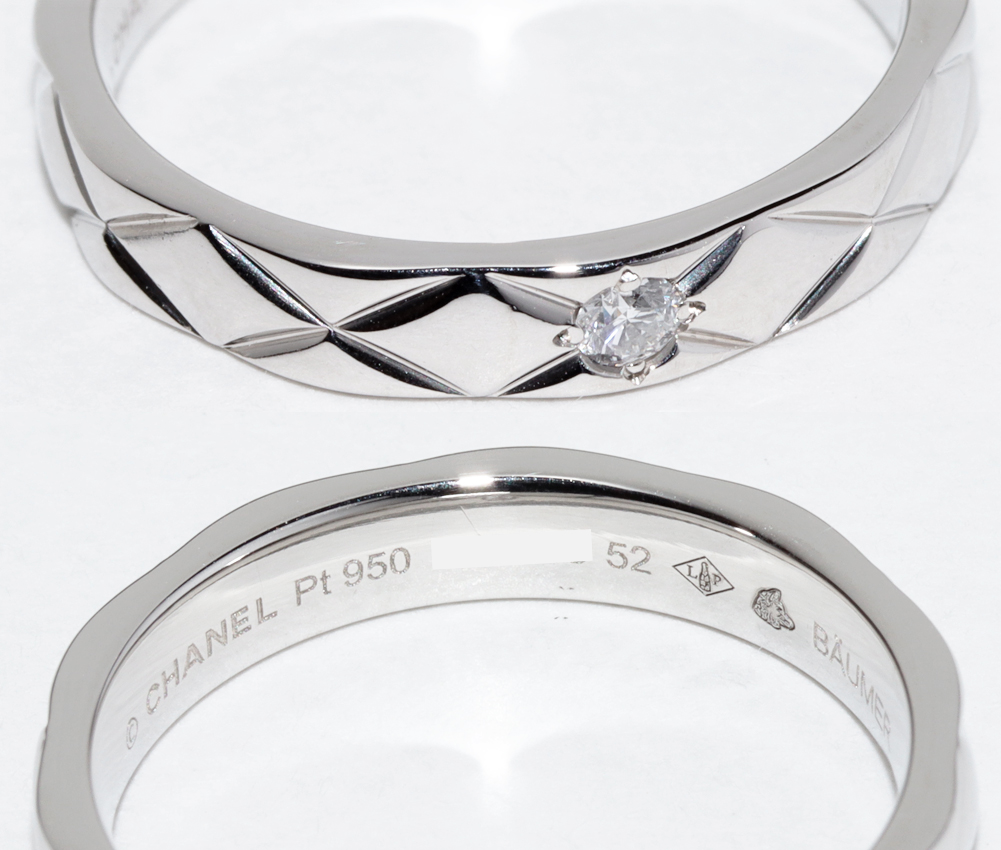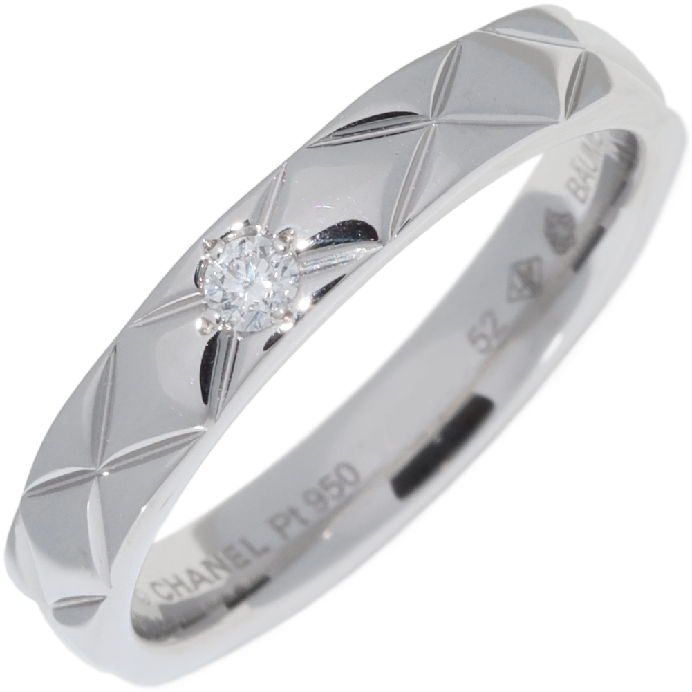 CHANEL(シャネル) Pt950 ダイヤ1P マトラッセリング ミディアム J2822 #52(約11.5号) 指輪