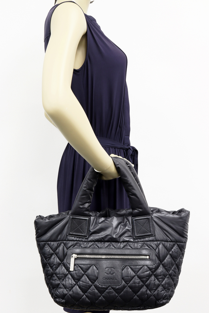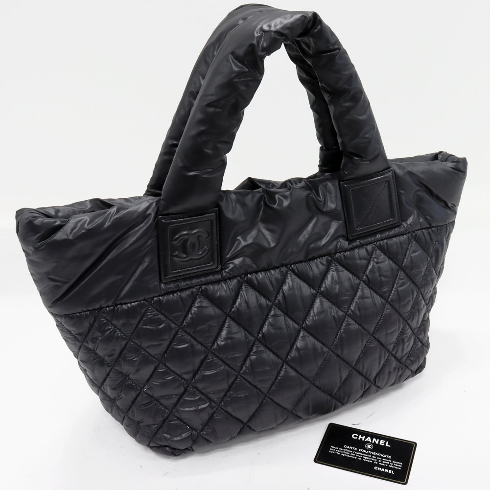 CHANEL(シャネル) コココクーン スモール ナイロンxカーフ 黒xボルドー A48610 トートバッグ ハンドバッグ