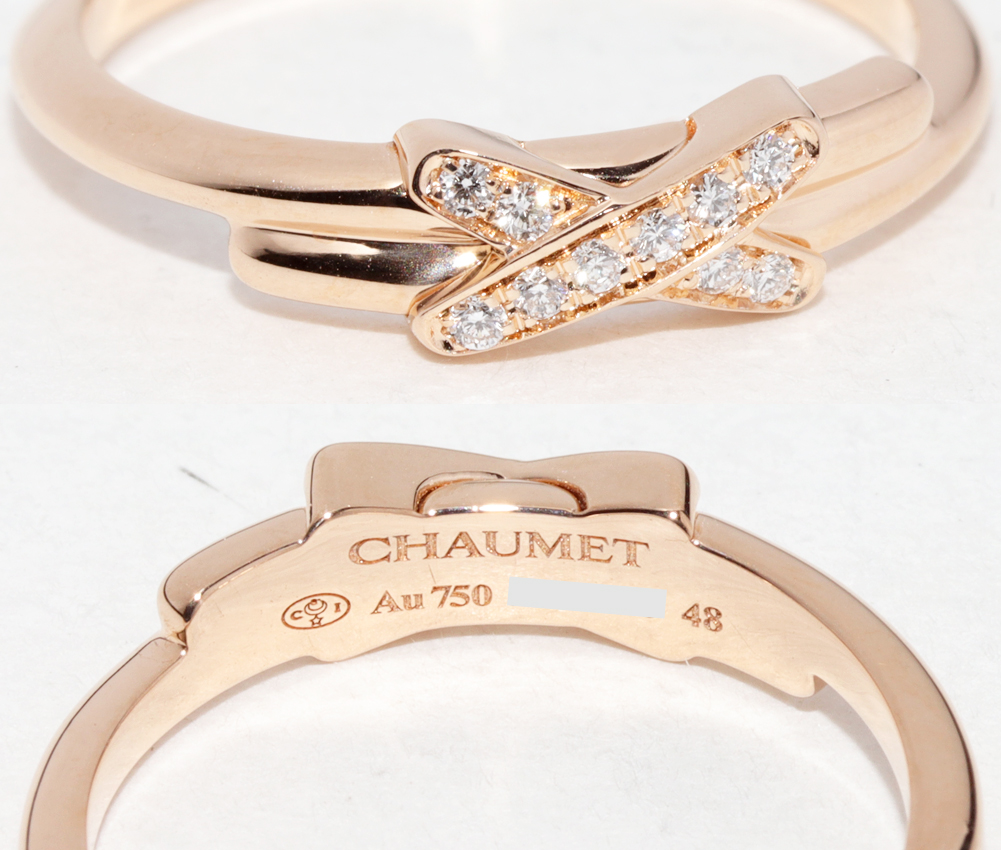 Chaumet(ショーメ) K18PG ダイヤ10P(0.05ct) ジュ ドゥ リアン リング 幅1.5ミリ 082218 #48(約7.5号) 指輪