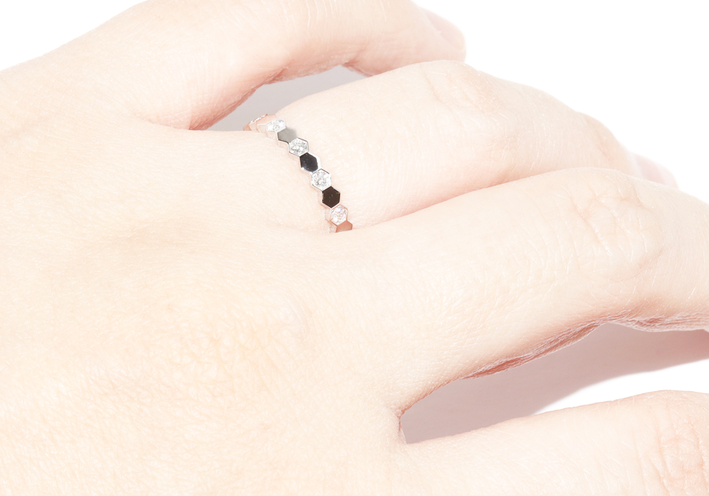 Chaumet(ショーメ) K18WG ダイヤ14P(0.21ct) ビードゥショーメ ビーマイラブ ハニカムリング ハーフダイヤ 081890 #49(約8.5号) 指輪