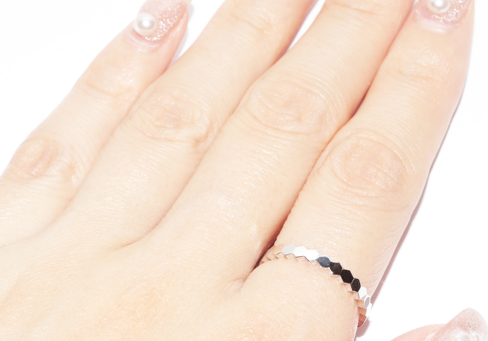 ホーム/ブランドジュエリー/ショーメ/Chaumet(ショーメ) K18WG ビードゥショーメ ビーマイラブ ハニカムリング 幅2.5ミリ 081930 #53(約12.5号) 指輪