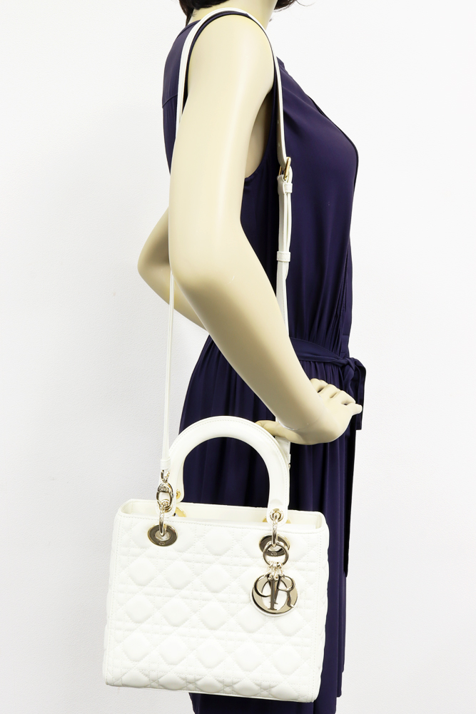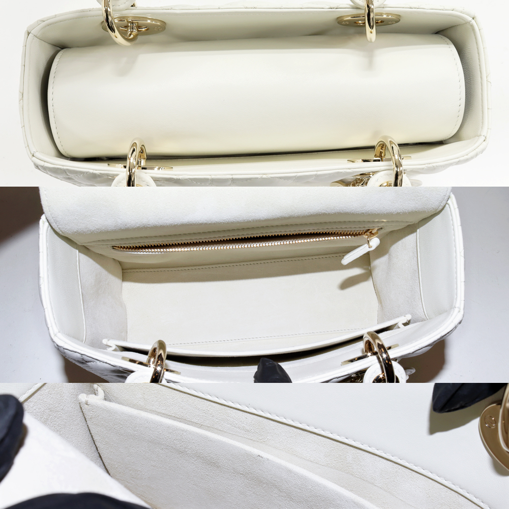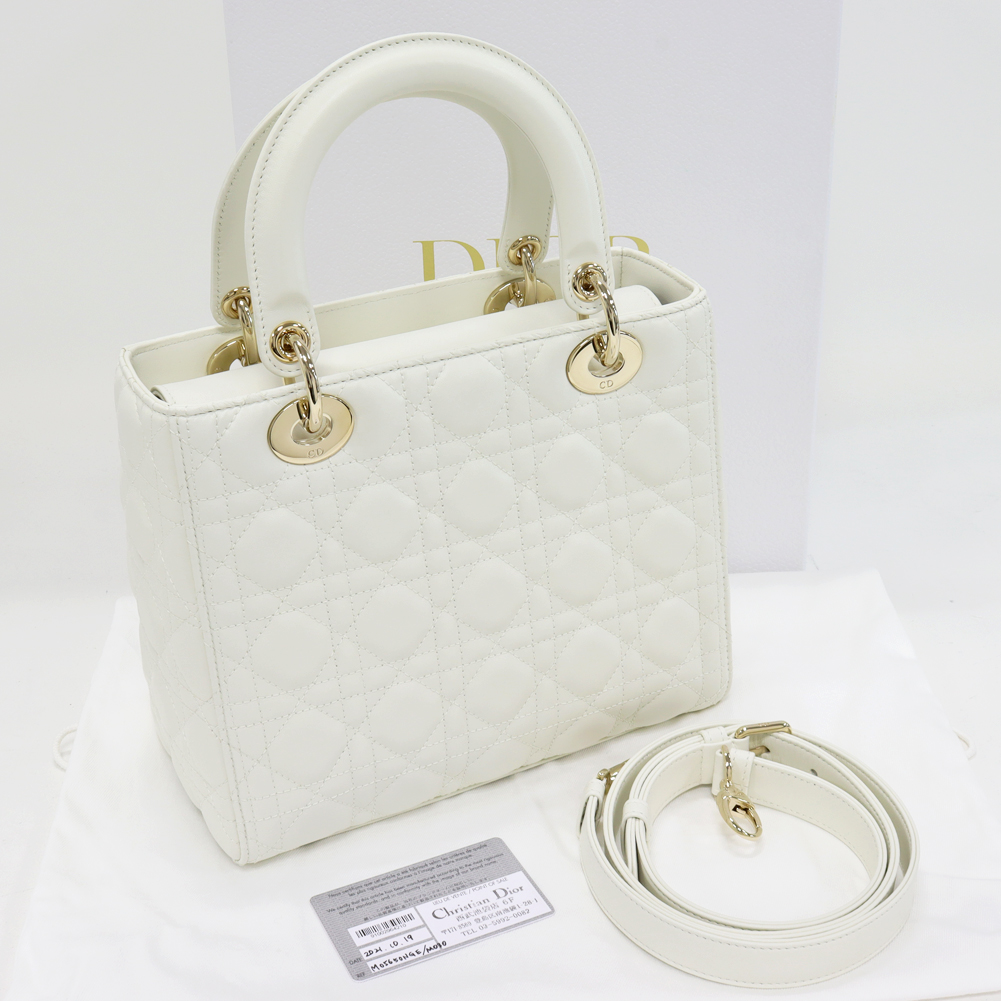 Christian Dior(クリスチャン・ディオール) レディディオール ミディアム ラムスキン ホワイト ゴールド金具 2WAY M05650NGE_M030 ハンドバッグ ショルダーバッグ
