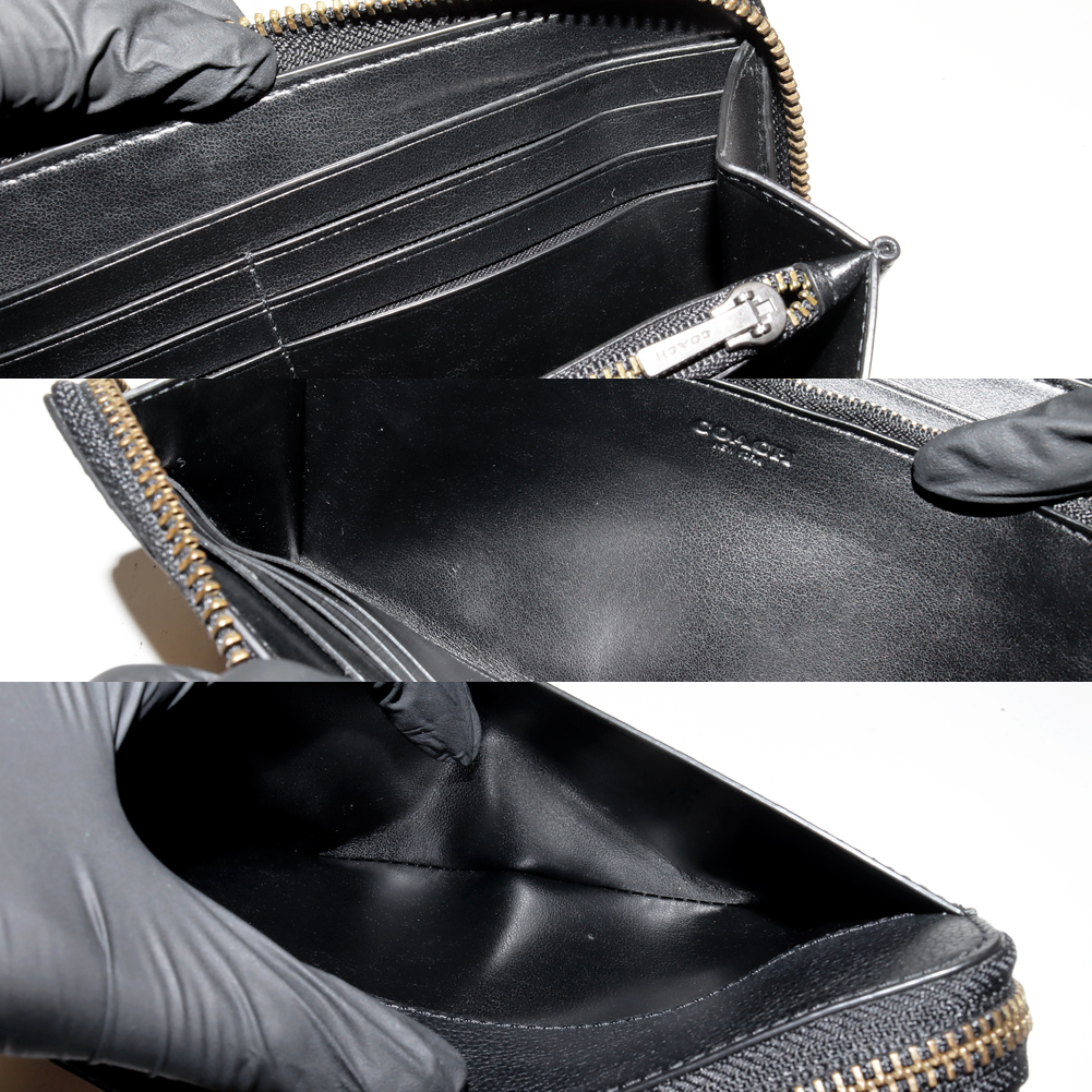 COACH(コーチ) アコーディオンウォレット カーフレザー 黒 F58102 ラウンドファスナー長財布(小銭入れあり)