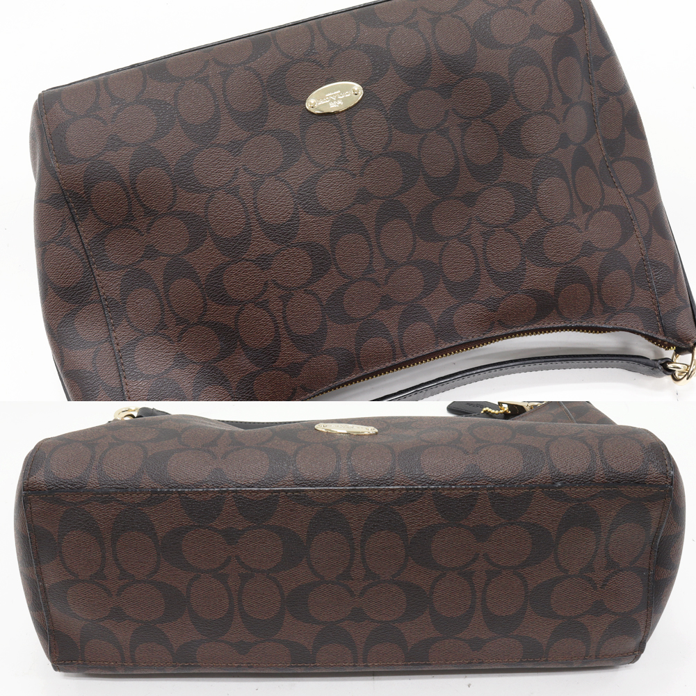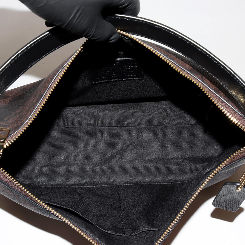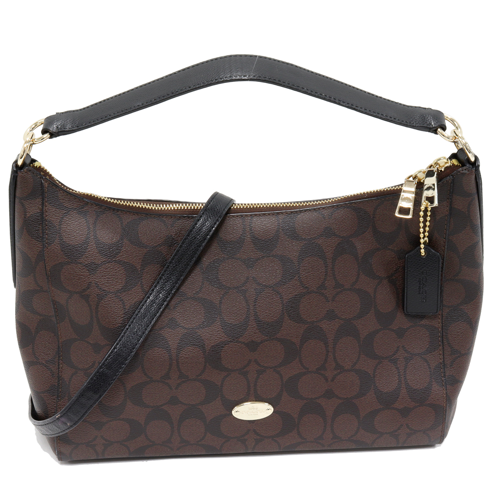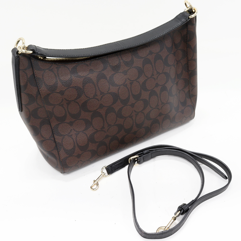 COACH(コーチ) シグネチャー イーストウエスト ホーボー セレスト PVCキャンバスxカーフ ブラウンx黒 2WAY F34899 IMAA8 ハンドバッグ ショルダーバッグ