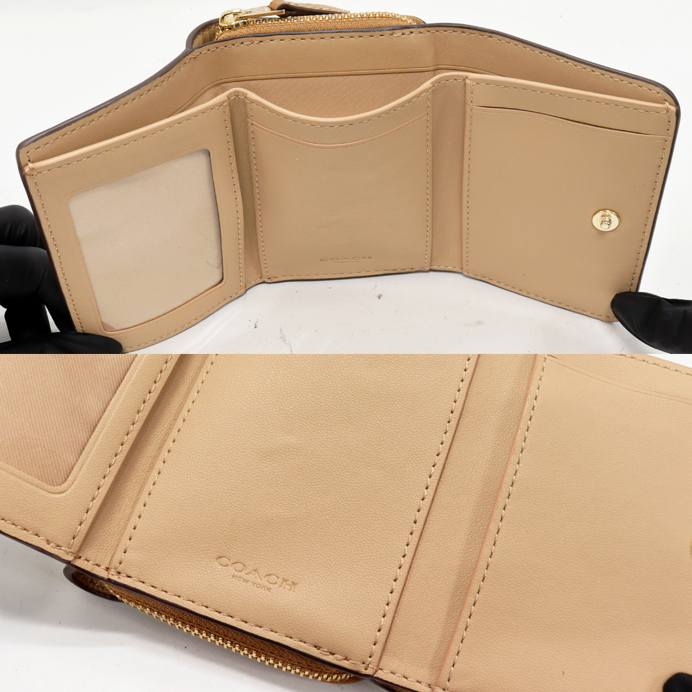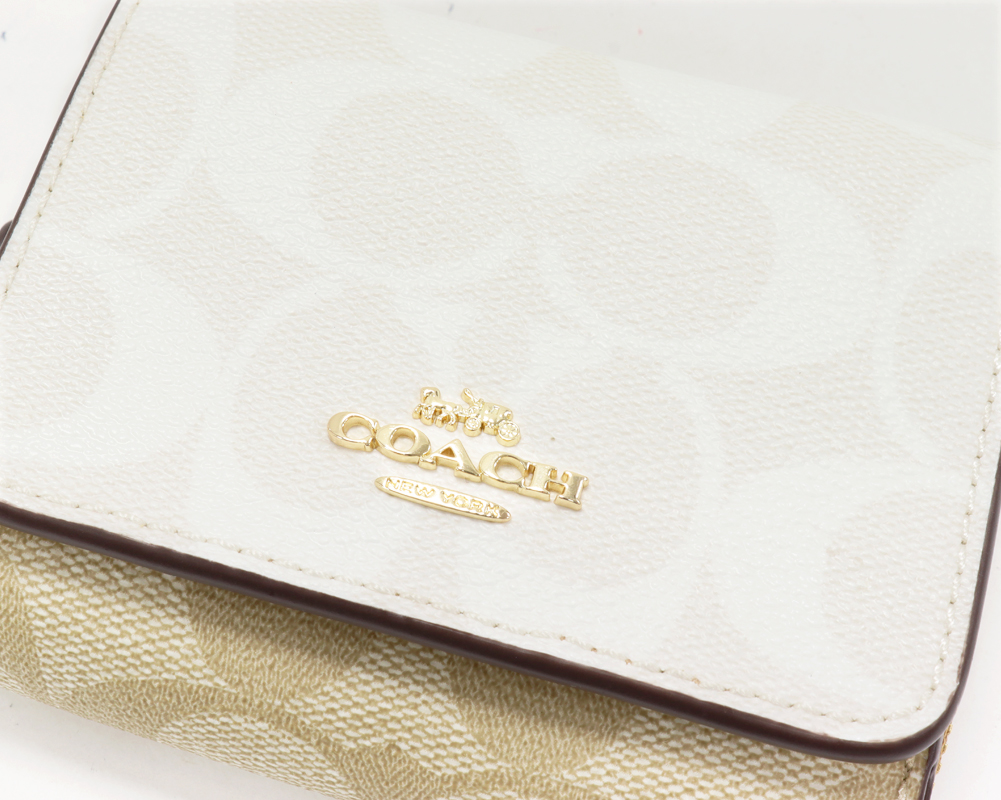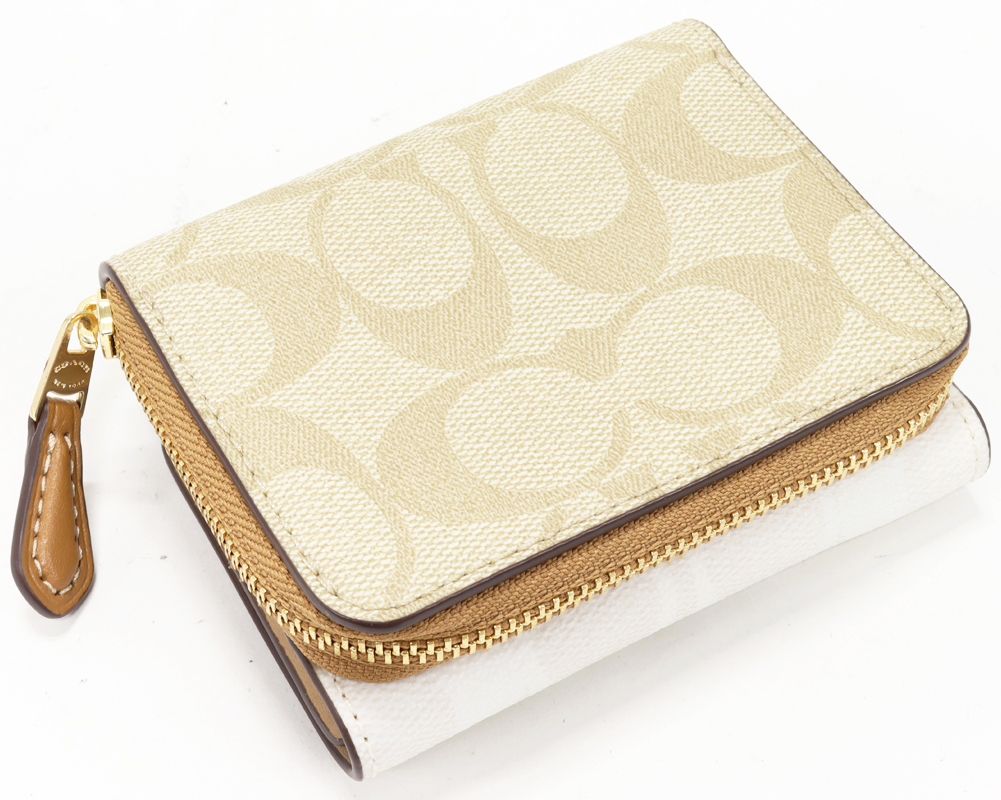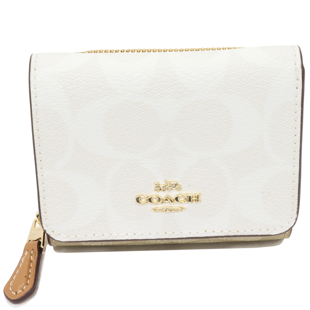 COACH(コーチ) シグネチャー トライフォールド ウォレット PVCキャンバスxレザー チョークxグレイシャーホワイト 78081 IMRFI ラウンドファスナー三つ折り財布(小銭入れあり)