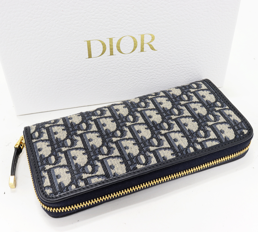Dior(ディオール) ディオール オブリーク ジャガード 30モンテーヌ Voyageur キャンバスxカーフ ネイビーxベージュ S2094UTZQ_M928 ラウンドファスナー長財布(小銭入れあり)