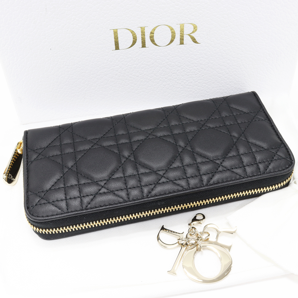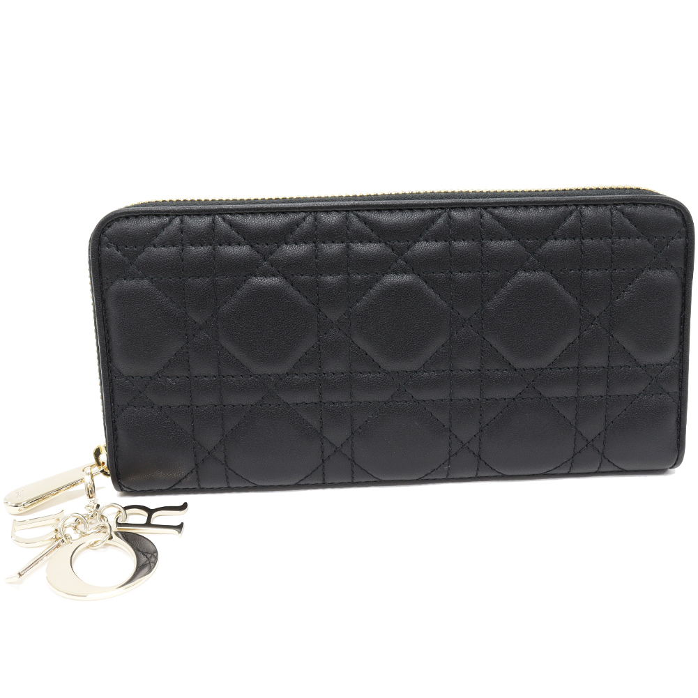 Dior(ディオール) レディ ディオール ヴォワヤジュール ウォレット ラムスキン ブラック S0007ONMJ_M900 ラウンドファスナー長財布(小銭入れあり)