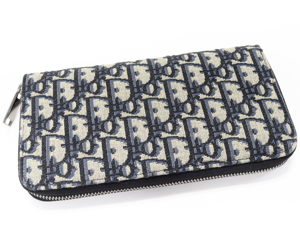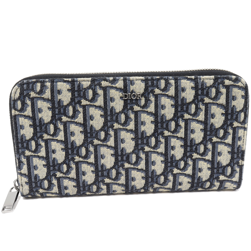 Dior(ディオール) オブリーク ジャガード ロングジップウォレット キャンバスxカーフ ネイビーxベージュ 2ESBC252YSE_H05E ラウンドファスナー長財布(小銭入れあり)