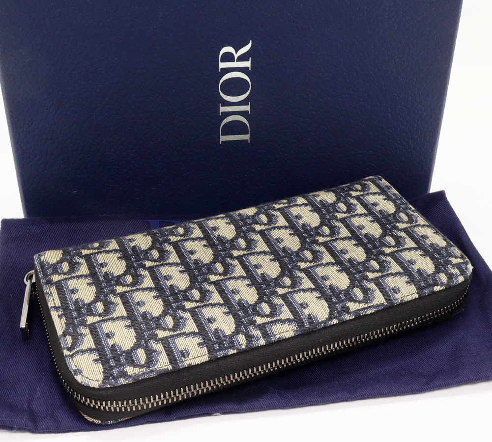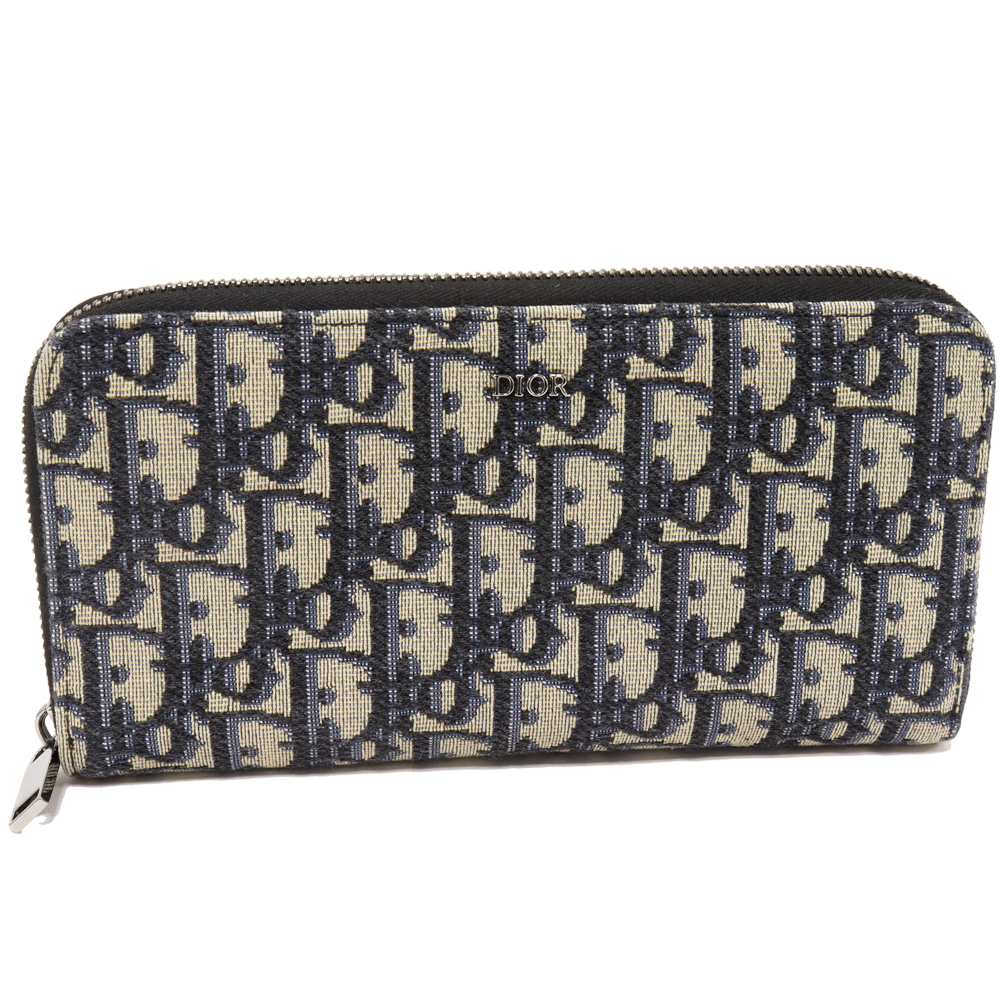Dior(ディオール) オブリーク ジャガード ロングジップウォレット キャンバスxカーフ ネイビーxベージュ 2ESBC252YSE_H05E ラウンドファスナー長財布(小銭入れあり)