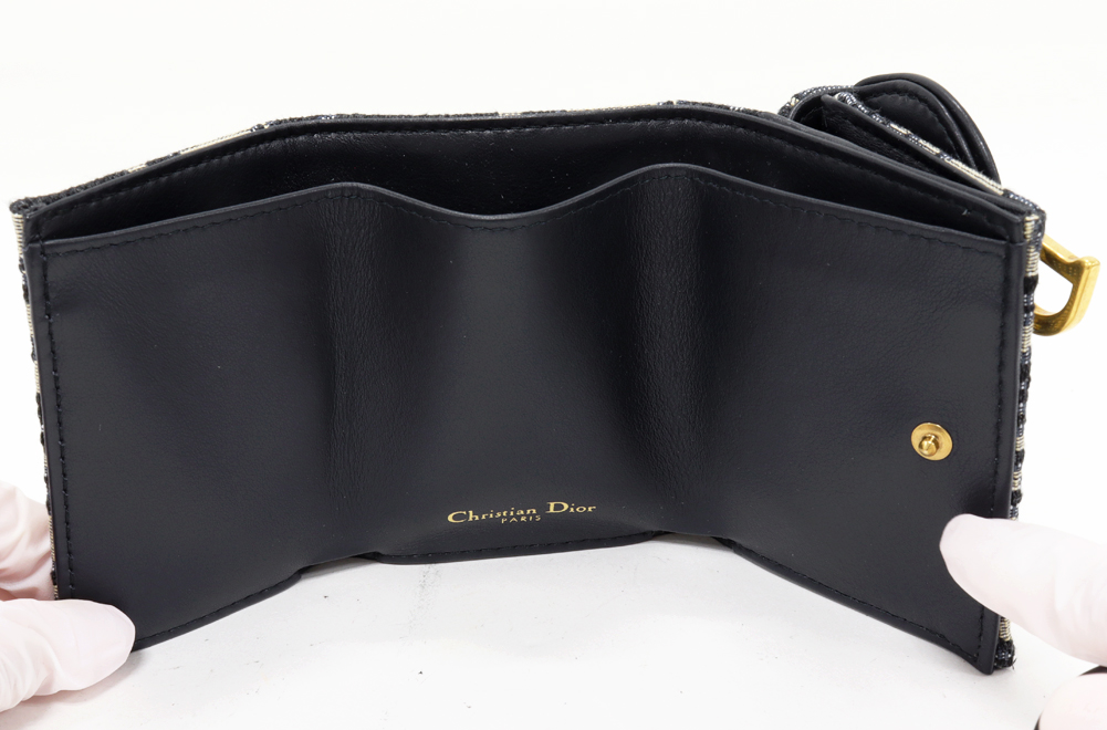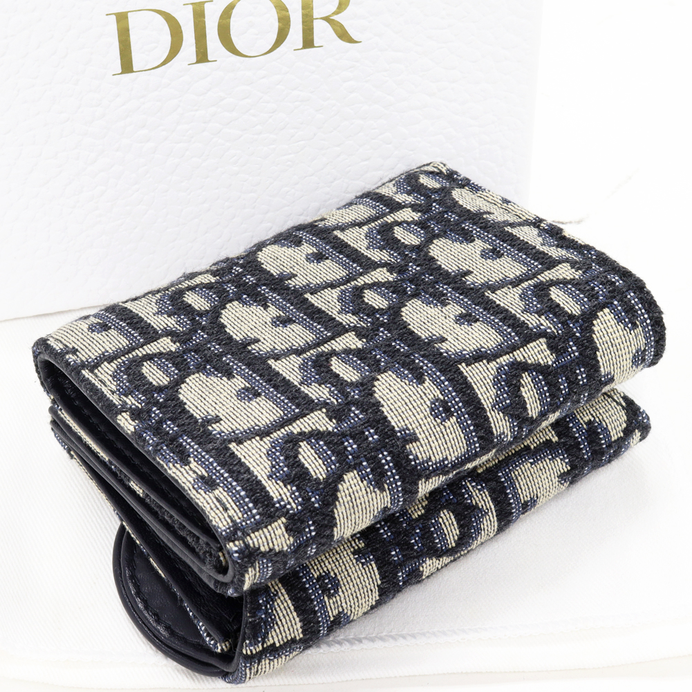Dior(ディオール) オブリーク サドル コンパクトウォレット キャンバスxカーフ ネイビーxベージュ ゴールド金具 S5653CTZQ M928 三つ折り財布(小銭入れあり)