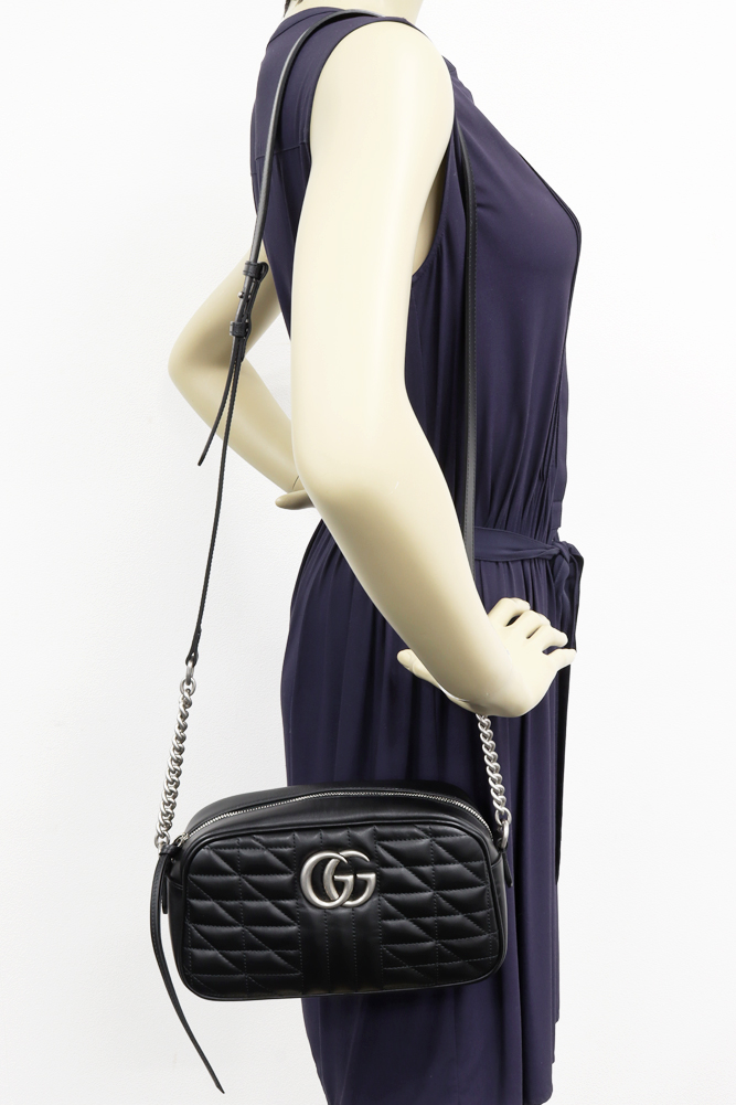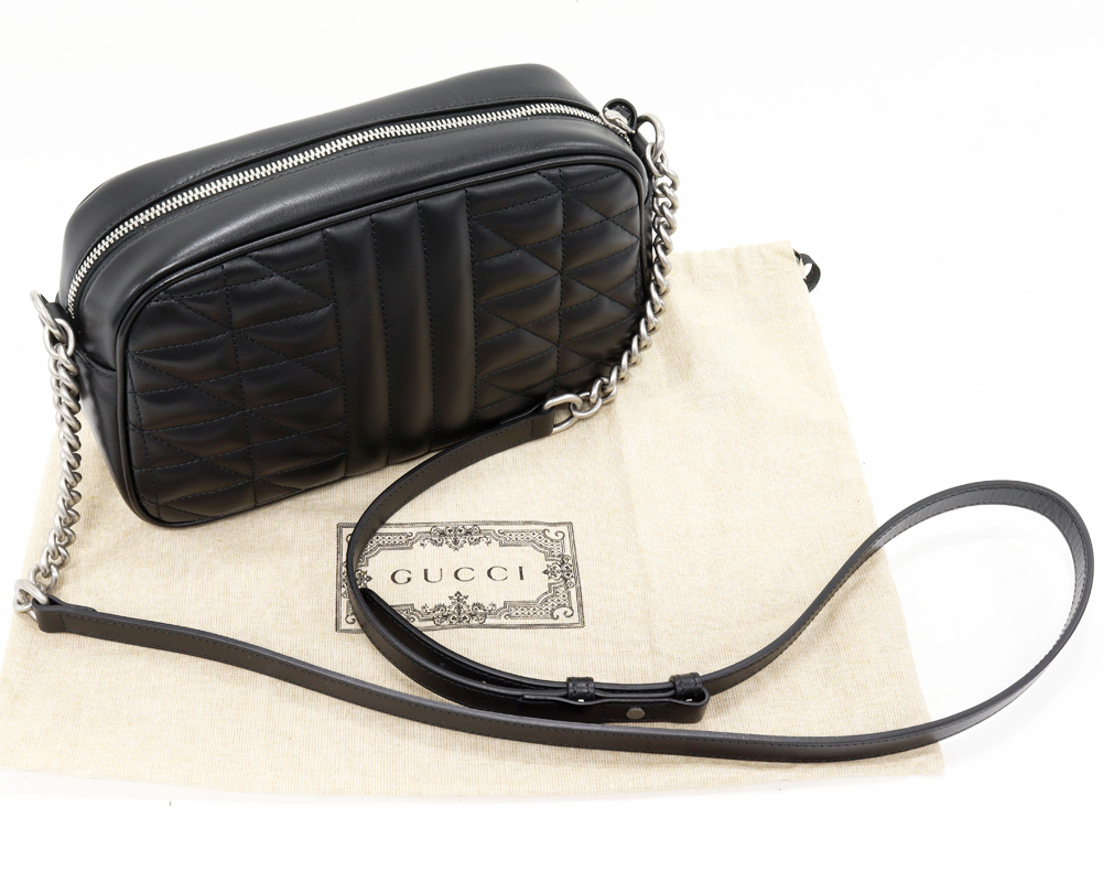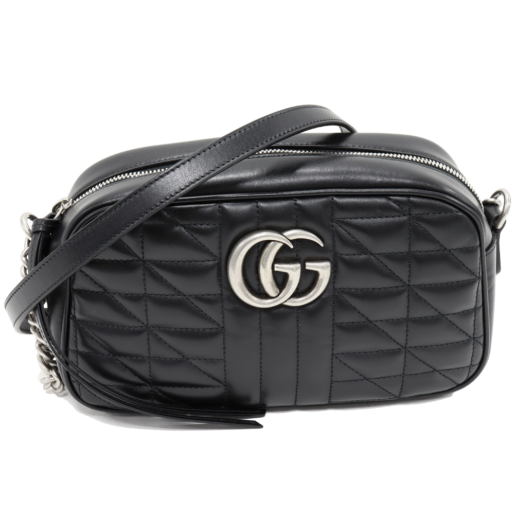 GUCCI(グッチ) GGマーモント キルティング スモール カメラバッグ カーフ ブラック シルバー金具 447632 UM8BN 1000 チェーンショルダーバッグ