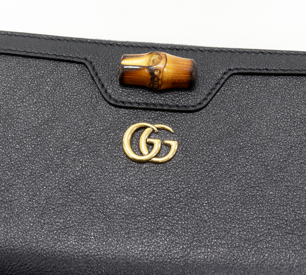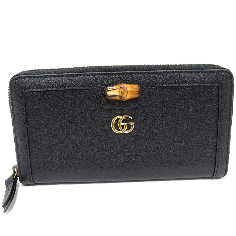 ホーム/財布/グッチ/GUCCI(グッチ) GGマーモント ダブルG ダイアナ バンブー ジップアラウンドウォレット カーフ ブラック 658634 ラウンドファスナー長財布(小銭入れあり)