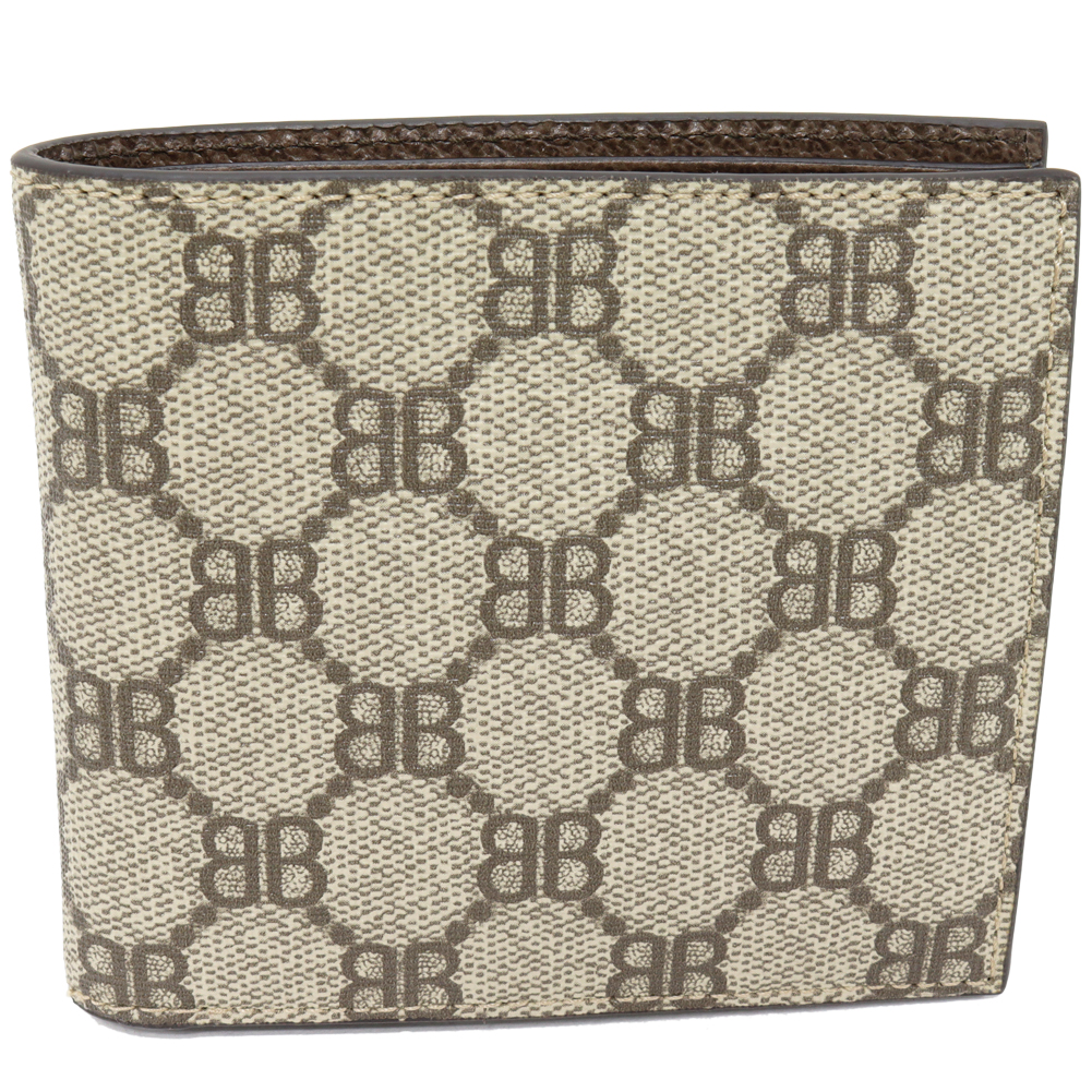 GUCCI(グッチ) ザ・ハッカープロジェクトコンパクトウォレット PVCキャンバス ベージュ グッチxバレンシアガコラボ限定 680403 二つ折り財布(小銭入れあり)