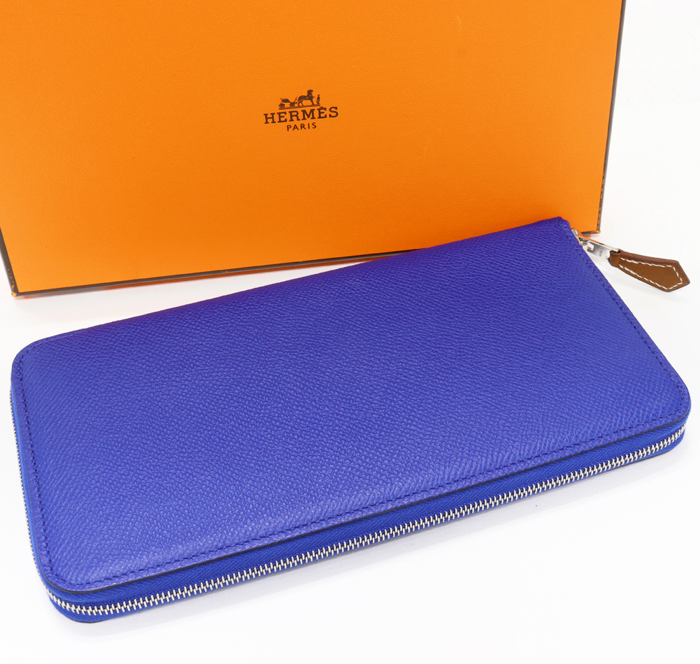 HERMES(エルメス) アザップロング シルクイン クリケティス ヴォーエプソン ブルーロワイヤル シルバー金具 H083821CK ラウンドファスナー長財布(小銭入れあり)